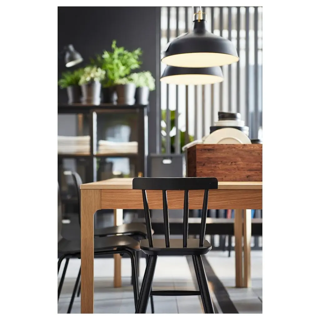 Когда стол не разложен, на поверхности столешницы нет никаких швов.Вы можете легко регулировать размер стола в зависимости от планируемых занятий: рисование, выполнение домашнего задания или настольные игры.Ножки всегда находятся по углам стола, даже когда он раздвинут, что обеспечивает достаточно места для стульев.1 человек может легко и быстро разложить стол перед приходом гостей.Вкладную доску удобно хранить под столешницей.Каждый стол уникален – благодаря естественному рисунку натуральной древесины и вариативности ее оттенков.Можно дополнить стульями и скамьями этой серии или другими стульями из ассортимента ИКЕА.Стол протестирован в соответствии с нашими строгими стандартами прочности, устойчивости и безопасности, чтобы долгие годы выдерживать все испытания повседневного использования.1 вкладная доска прилагается.Рекомендуется использовать только в помещении.Рекомендуется использовать только внутри помещений.Дизайнер