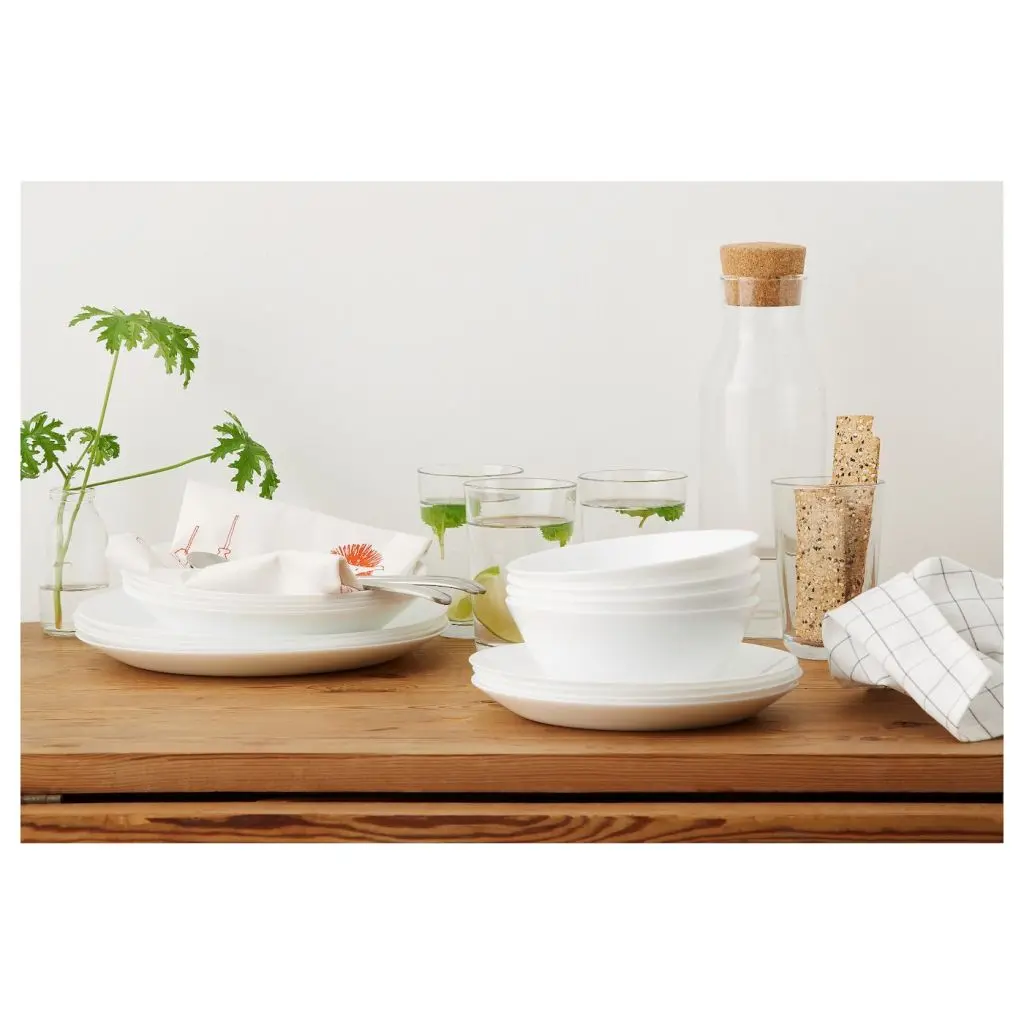 Эта посуда из закаленного стекла выглядит так, как будто изготовлена из костяного фарфора. Элегантные предметы для сервировки стола стоят совсем недорого.