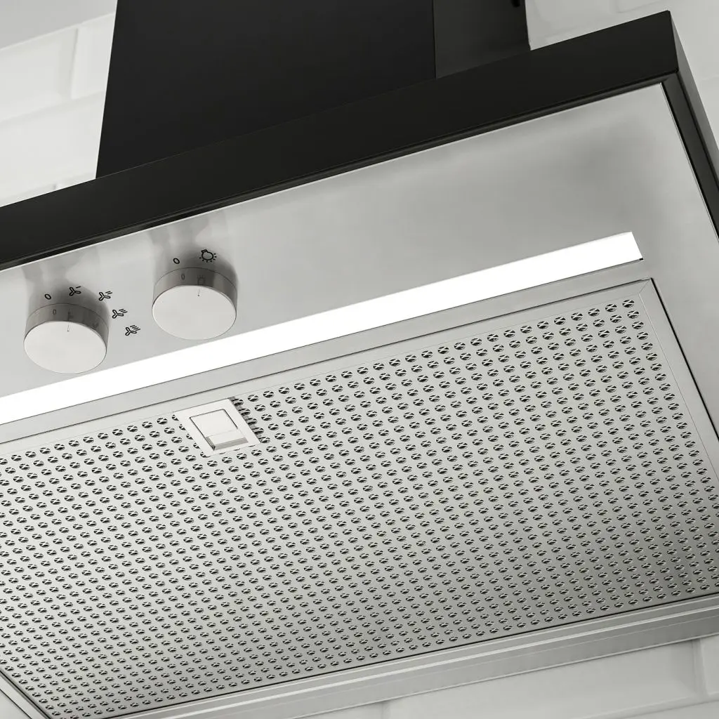 Вытяжка простой лаконичной формы идеально подходит для современной кухни. Светодиодная подсветка обеспечивает равномерное освещение, а благодаря низкому уровню шума вы сможете во время приготовления пищи спокойно разговаривать с домашними.