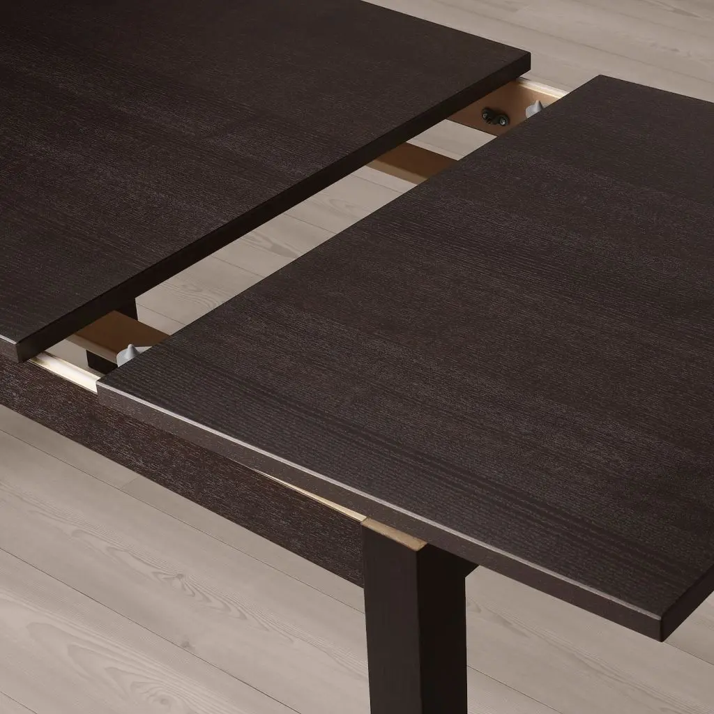 Глубокий тон темно-коричневой морилки подчеркивает красоту и выразительность фактуры натурального дерева.Этот стол будет прекрасно смотреться и на кухне, и в столовой.Размер стола легко изменить. Благодаря вкладной доске, хранящейся под столешницей, за столом могут сидеть от 4 до 6 человек.1 человек может легко и быстро разложить стол перед приходом гостей.После обеда вкладную доску легко убрать, а поверхность стола будет абсолютно гладкой, без швов и стыков.Подстолье из массива дерева обеспечивает устойчивость конструкции.Мы все проверили! Поверхность столешницы выдержит воздействие жидкостей и тепла, а также будет устойчива к пятнам, жиру, царапинам и ударам.Рекомендуется использовать только в помещении.На 4-6 человек.1 вкладная доска прилагается.Для обеспечения максимального качества при необходимости подтягивайте шурупы.Дизайнер
