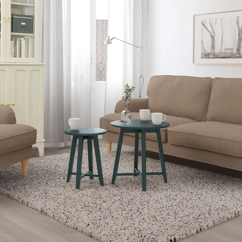 Круглая столешница удобна для сервировки чая или кофе, а благодаря компактному размеру для этого столика всегда найдется место в комнате.Пластиковые накладки для защиты пола от царапин прилагаются.Комплект столов КРАГСТА можно дополнить большим журнальным столом этой серии.Размеры: 1 шт. диаметр 49 см, высота 51 см и 1 шт. диаметр 35 см, высота 45 см.Дизайнер