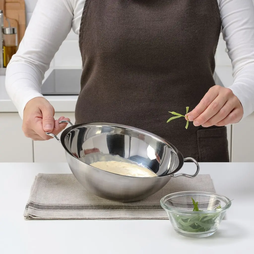 Поместите вставку в кастрюлю с кипящей водой и приготовьте изысканный соус Беарнез или растопите шоколад для десерта.Благодаря плоскому дну можно использовать как обычную миску.Нержавеющая сталь — прочный и простой в уходе материал.Подходит для кухонной посуды объемом 3 и 5 литров.Дизайнер