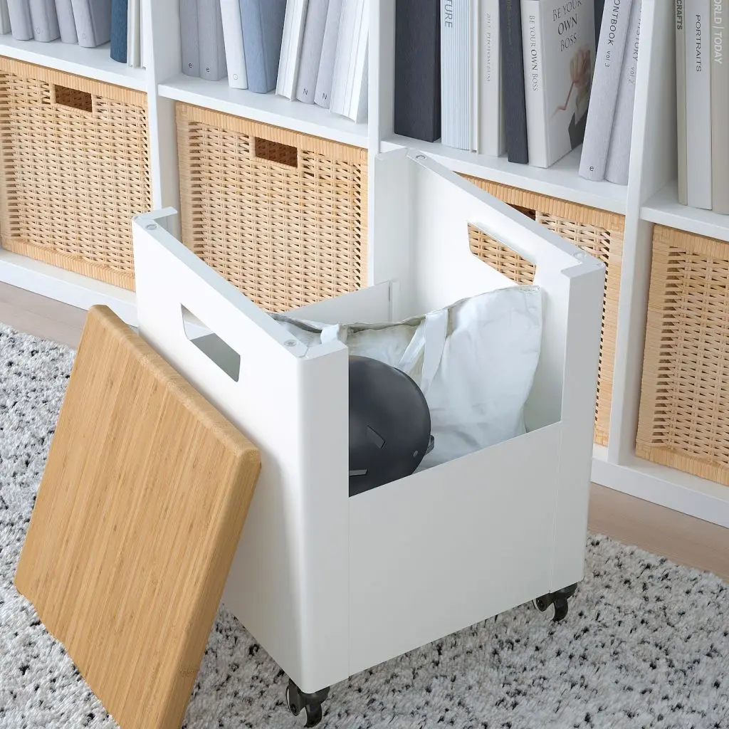Универсальное решение, которое можно использовать для хранения самых разных вещей, например велосипедного шлема, рюкзака или офисных принадлежностей. Бамбуковая крышка сделает интерьер теплее и уютнее.