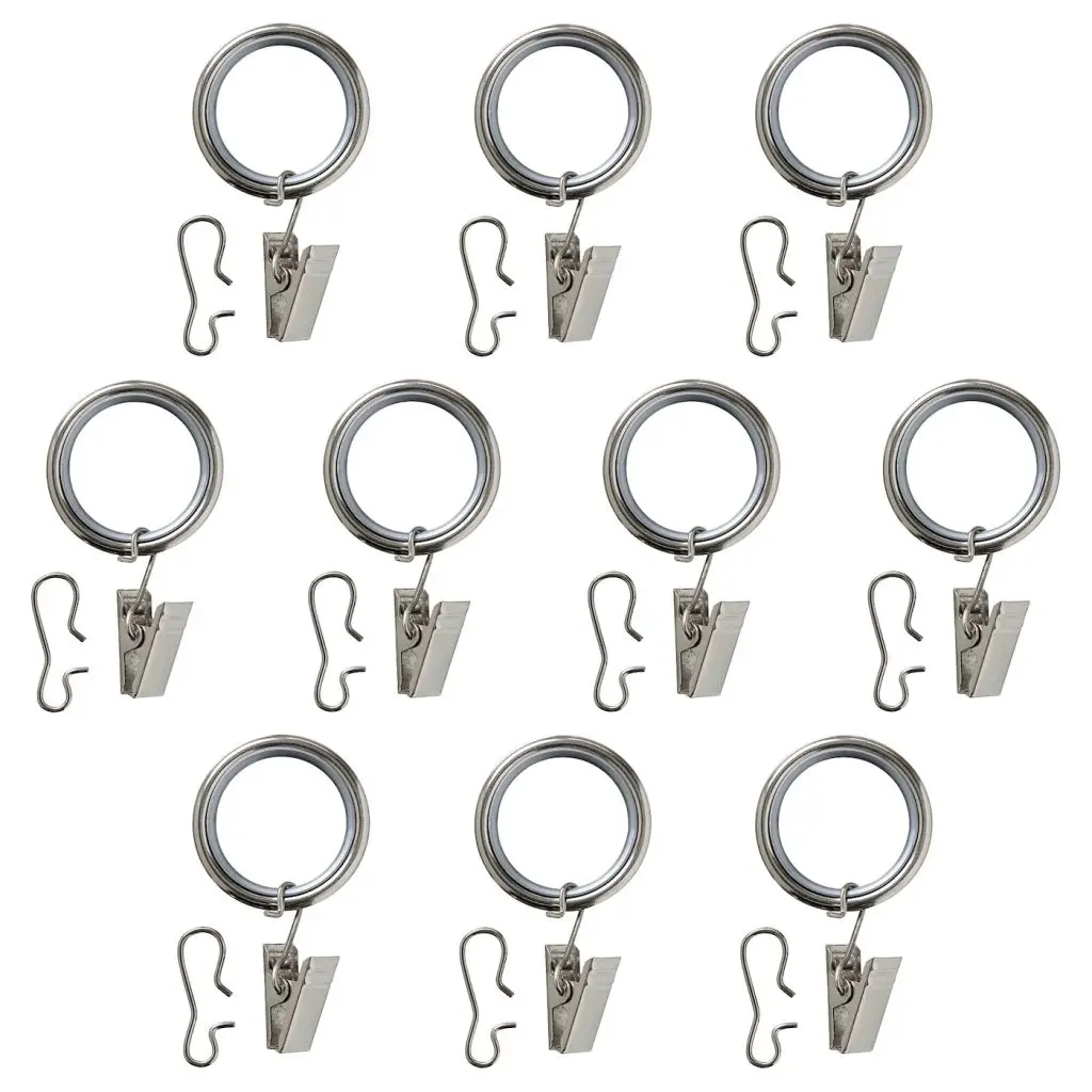 Повесьте гардины, используя кольца с зажимами или кольца с крючками.Гардины движутся по карнизу бесшумно благодаря пластиковой отделке внутренней поверхности колец.В набор входит: 10 колец (диам. 25 мм), 10 зажимов с крючками и 10 крючков.Гардинные крючки РИКТИГ продаются отдельно. Дизайнер