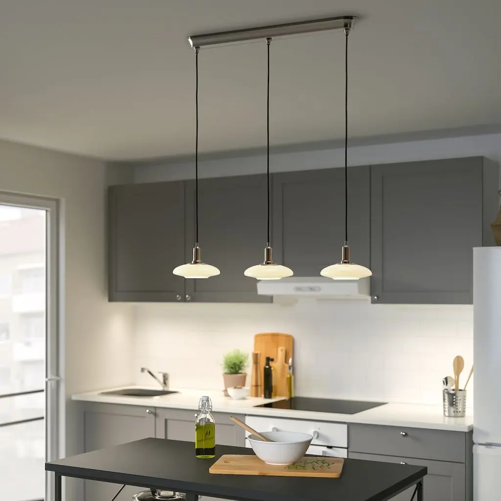 Этот светильник обеспечивает приятное освещение столовой. Создайте направленное освещение над обеденным или барным столом.Абажуры из выдувного стекла изготовлены искусными мастерами.Все три светильника легко повесить на нужной высоте, соответствующей вашим потребностям и интерьеру. А чтобы добиться идеальной высоты, их можно слегка подрегулировать, когда монтаж к потолку уже завершен.Лампочки продаются отдельно. Мы рекомендуем шарообразный молочный светодиод E14 (3 шт.).Постоянное подключение к электросети.Крепится шурупами.Шурупы не прилагаются.Чтобы продлить срок службы товара, некоторые его детали можно заменить. Подробнее — в отделе ИКЕА Сервис или на сайте IKEA.ru.Может требоваться специальная обработка отходов. За более подробной информацией обращайтесь в местные органы власти.Дизайнер