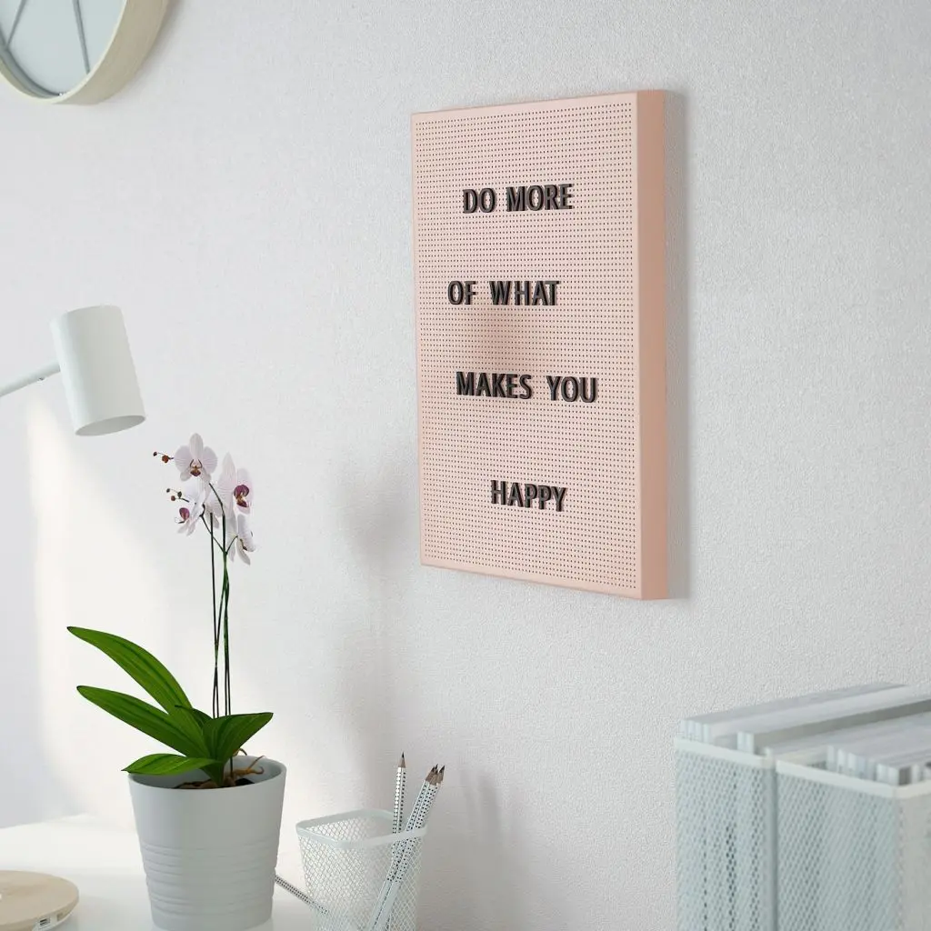 Все 426 букв, знаков и цифр останутся в целости и сохранности, т. к. вы сможете хранить их в прилагающемся мешочке.Прилагающиеся уголки для крепления фотографий помогут вам украсить свою панель любимыми картинками.Панель можно повесить или установить как горизонтально, так и вертикально.Знакомый шрифт? Он называется Noto и используется во всех рекламных материалах ИКЕА и, конечно, на ценниках и нашем интернет-сайте. А чтобы надписи на вашей панели выглядели по-шведски, мы сохранили для вас буквы å, ä и ö.С помощью товаров серии СВЕНСОС вы можете создать уникальный коллаж из разных досок для записей — и как угодно часто его менять: ведь все доски здесь одного размера и подвешиваются одинаково.