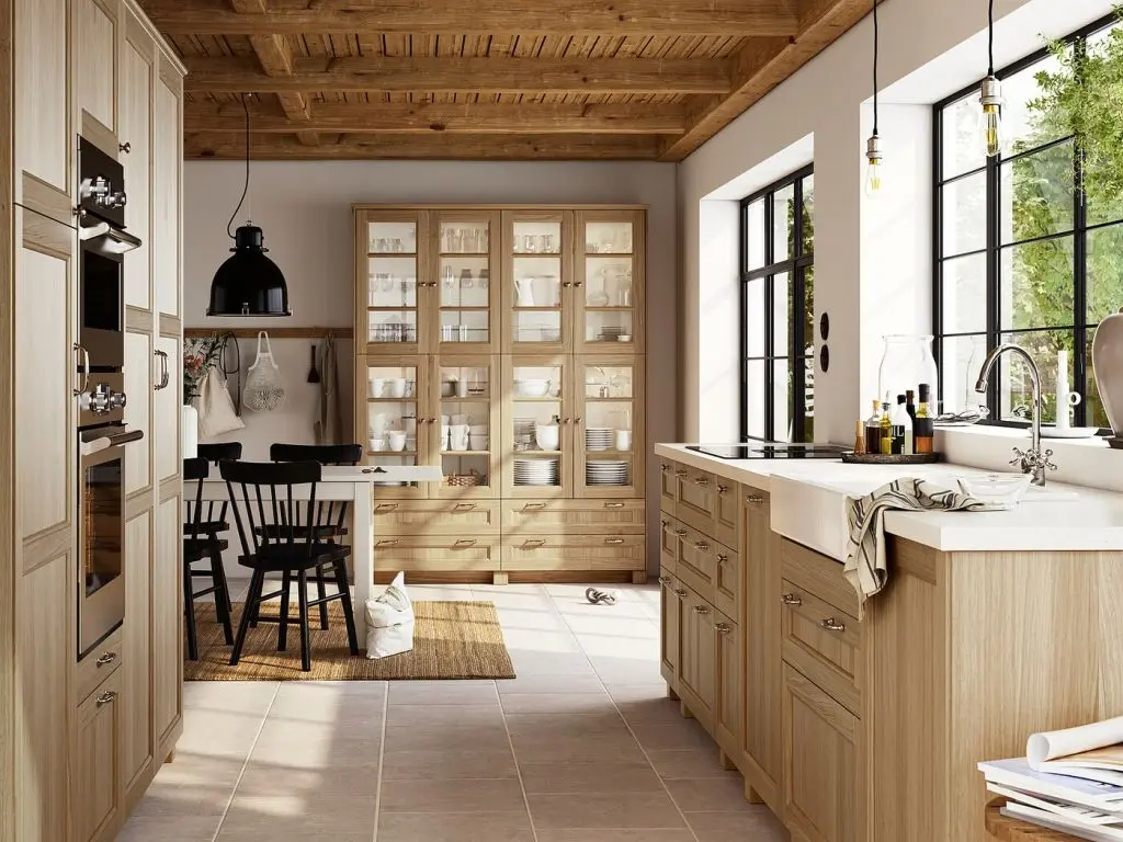 Фасады ВЕДХАМН из натурального дерева создадут на кухне по-настоящему домашнюю атмосферу. Дверцы с каркасом из массива дуба и отделкой из дубового шпона, дизайн которых продуман до мелочей, отличаются высокой прочностью и красотой.