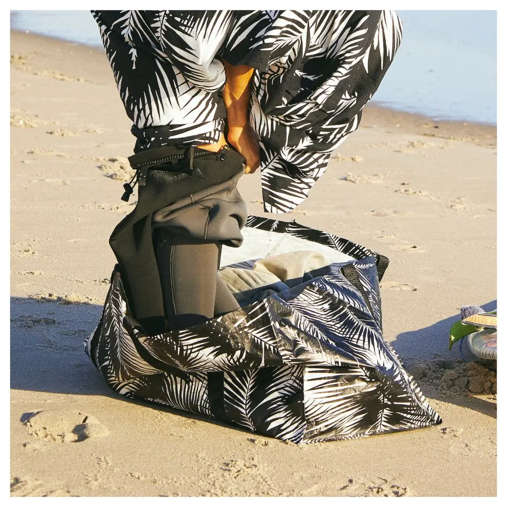 В эту черно-белую сумку поместится много вещей, и она идеально подходит для похода на пляж. В ней есть два съемных отделения, и ее можно полдложить под ноги во время переодевания, чтобы на одежду не попал песок.