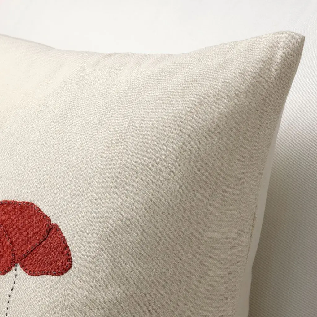 Хлопковый чехол украшен вышивкой, нашивками в виде маков и декоративными пуговицами. Каждый чехол уникален, так как изготавливается вручную искусными мастерицами социального предприятия Rangsutra в Индии.