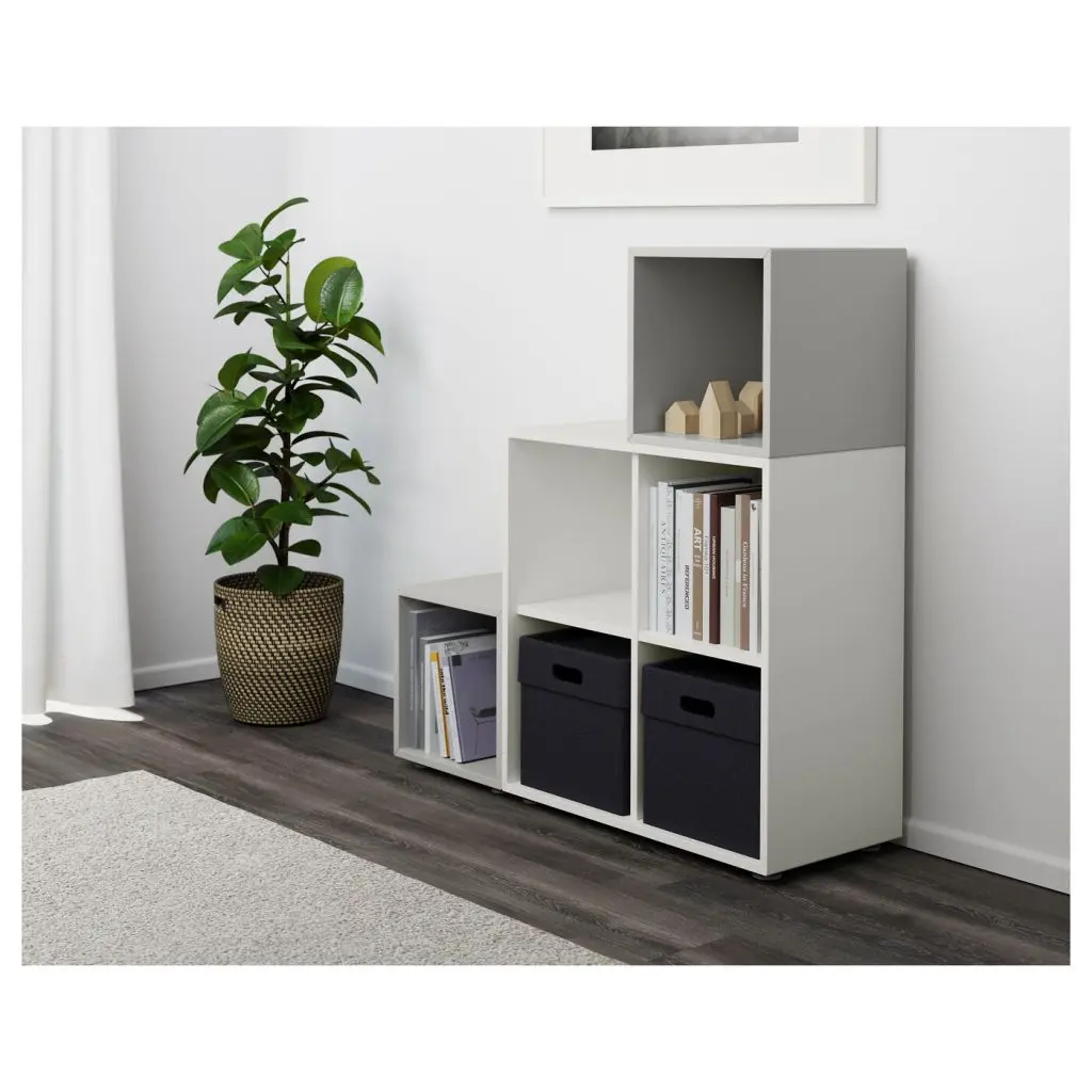 Ассиметричное расположение секций подчеркнет индивидуальность решения для хранения.Сборка очень проста благодаря штифтам, которые вставляются в подготовленные отверстия.Регулируемые ножки позволяют скорректировать неровности пола.Эту мебель необходимо крепить к стене с помощью прилагаемого стенного крепежа.Для разных стен требуются различные крепежные приспособления. Подберите подходящие для ваших стен шурупы, дюбели, саморезы и т. п. (не прилагаются).Дизайнер
