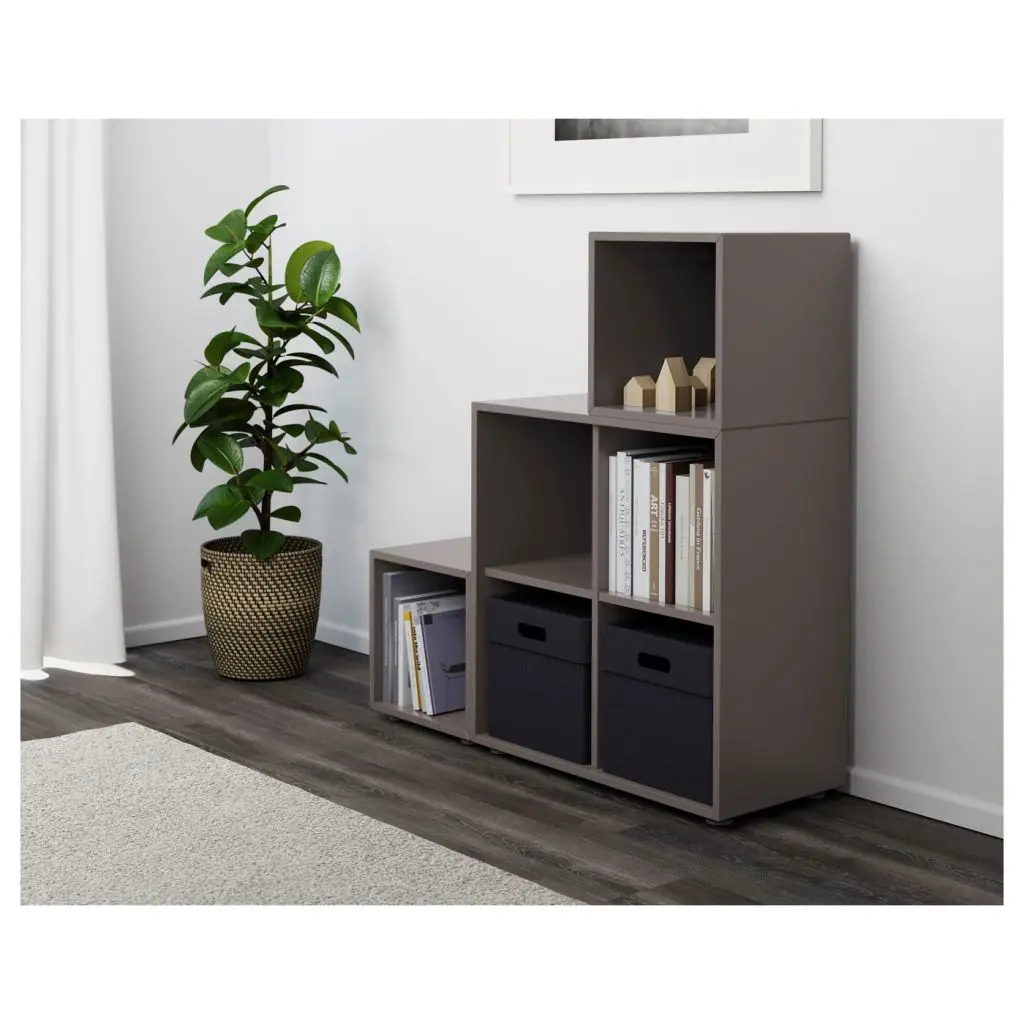 Ассиметричное расположение секций подчеркнет индивидуальность решения для хранения.Сборка очень проста благодаря штифтам, которые вставляются в подготовленные отверстия.Регулируемые ножки позволяют скорректировать неровности пола.Эту мебель необходимо крепить к стене с помощью прилагаемого стенного крепежа.Для разных стен требуются различные крепежные приспособления. Подберите подходящие для ваших стен шурупы, дюбели, саморезы и т. п. (не прилагаются).Дизайнер