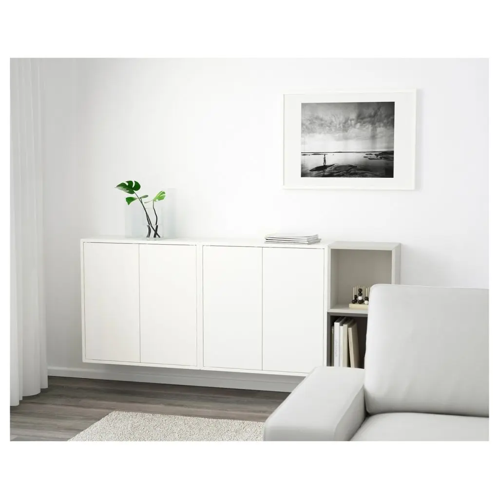 Комбинируйте открытое и закрытое хранение в зависимости от потребностей.Дверца со встроенным нажимным механизмом открывается легким нажатием.4 съемные полки позволяют адаптировать пространство в соответствии с потребностями хранения, одна несъемная полка обеспечивает устойчивость.Накладные шины ЭКЕТ для фиксации к стене прилагаются.Для разных стен требуются различные крепежные приспособления. Подберите подходящие для ваших стен шурупы, дюбели, саморезы и т. п. (не прилагаются).Максимальная нагрузка на подвесной шкаф зависит от материала стены.Дизайнер