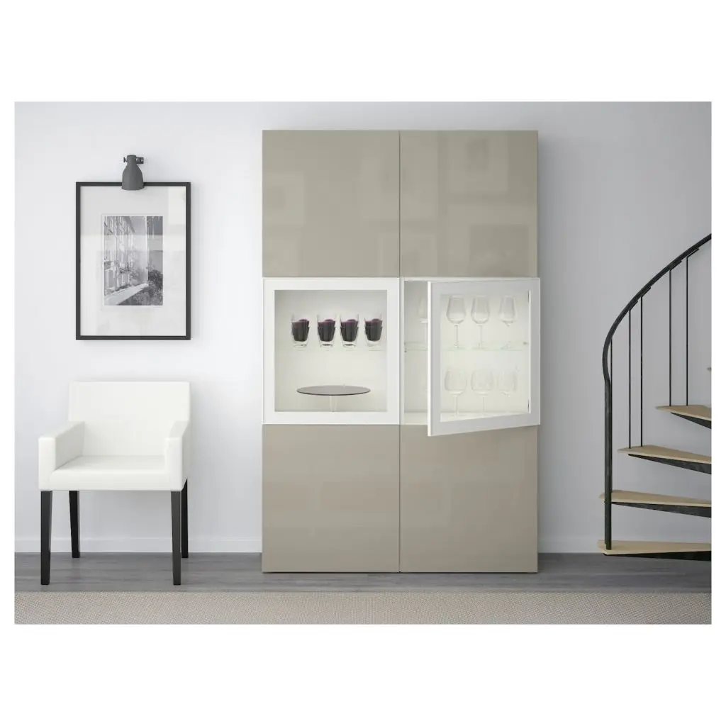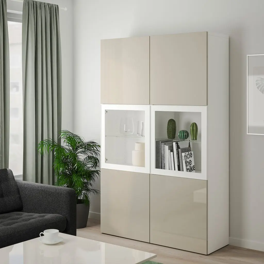 Комбинация д/хранения+стекл дверц, белый, Сельсвикен глянцевый/бежевый прозрачное стекло, 120x40x192 см