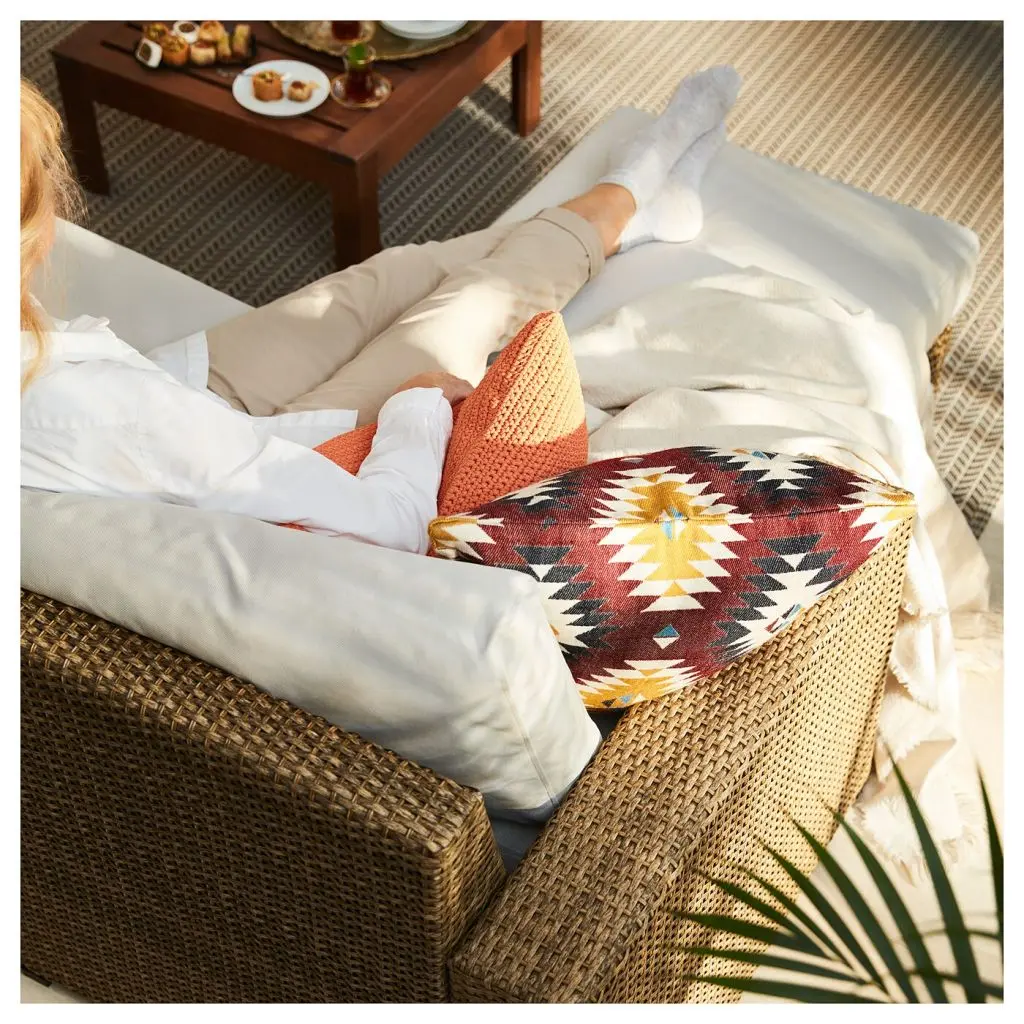 Комбинируя разные секции, вы можете создать диван, по форме и размеру идеально соответствующий вашим потребностям.Практичное отделение для хранения под сиденьем.Расцветка чехла на подушку сохранит свежесть надолго, так как ткань устойчива к выцветанию.Водоотталкивающий чехол – просто стряхните дождевые капли с подушки.Чехол можно снять и постирать в стиральной машине.Дополните диван декоративными подушками, чтобы придать ему более выразительный и индивидуальный облик.Соединительные крепления для соединения секций прилагаются.Можно дополнить сумкой ТОСТЕРО.Дизайнер