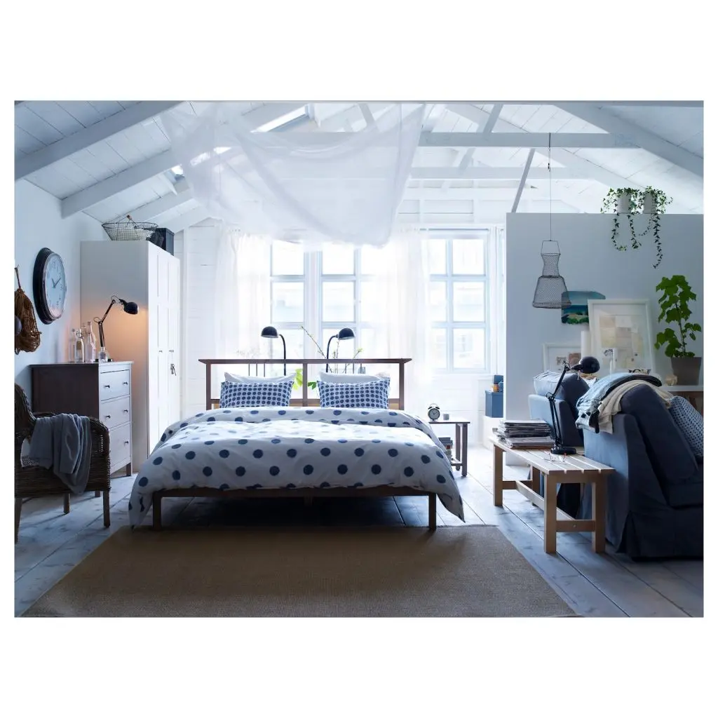Массив дерева – прочный натуральный материал.17 многослойных реек приспосабливаются к весу тела и повышают упругость матраса.Матрас и постельное белье продаются отдельно.Реечное дно кровати прилагается.Кроватные ящики ГИМСЕ обеспечат под кроватью дополнительное место для хранения.Дизайнер