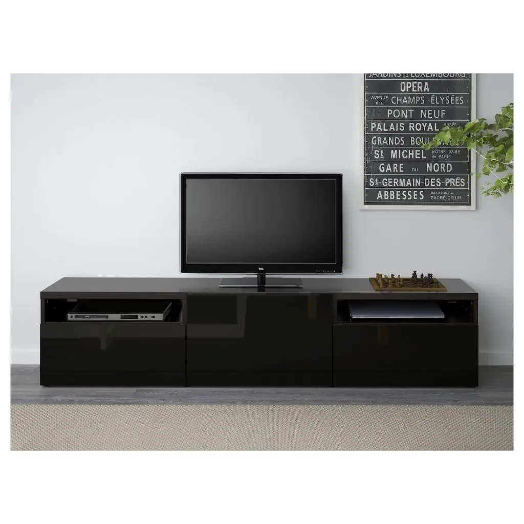 Тумба под ТВ, черно-коричневый, Сельсвикен глянцевый/черный, 180x42x39 см
