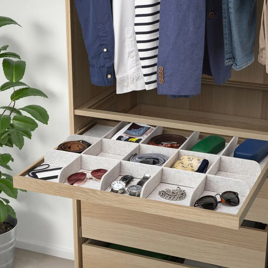 Бесплатно 10 лет гарантии. Подробнее об условиях гарантии – в гарантийной брошюре.Выдвижная полка обеспечивает хороший обзор и удобный доступ к вашим вещам.Благодаря интегрированному доводчику задвигается медленно плавно и бесшумно.Разделитель помогает организовать хранение небольших вещей, например шарфов, ремней и галстуков.Большие отделения сзади и маленькие впереди обеспечивают удобный доступ к содержимому.15 отделений.Имеется несколько вариантов ширины.Можно дополнить стеклянной полкой КОМПЛИМЕНТ, чтобы обеспечить обзор содержимого выдвижной полки.Направляющие для выдвижной полки прилагаются.Дизайнер