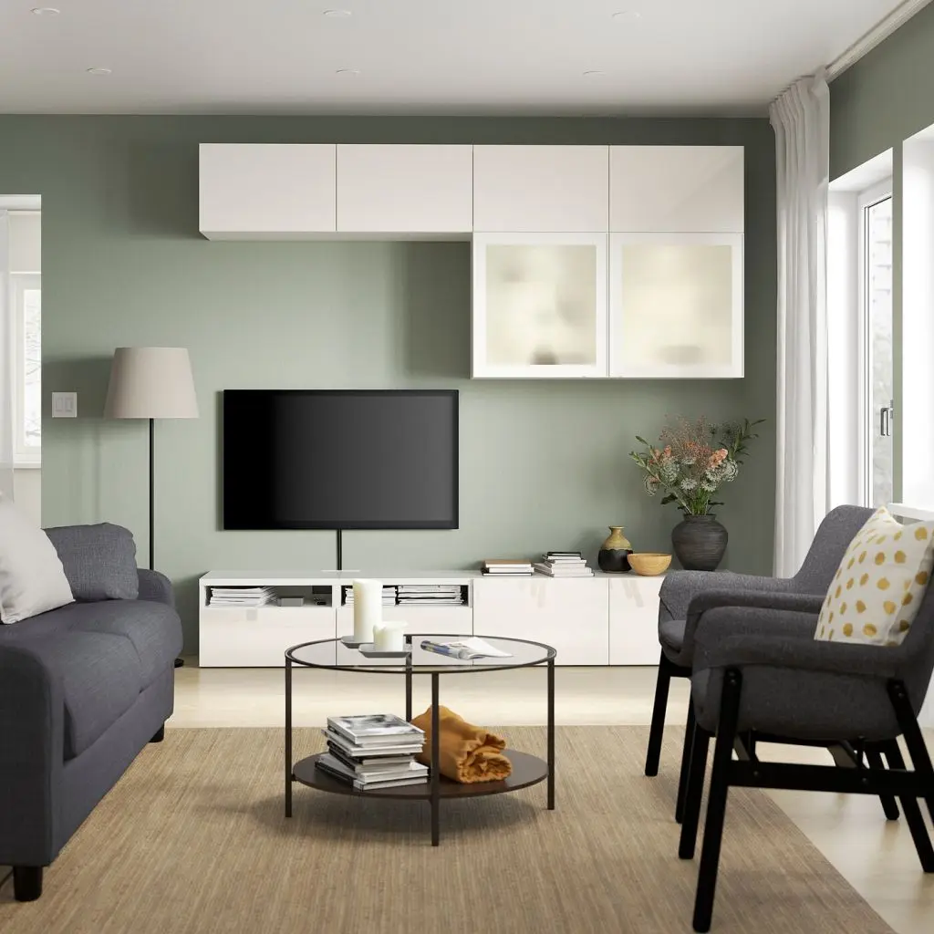 Благодаря нескольким отверстиям на задней панели тумбы под ТВ провода от телевизора и других устройств всегда будут под рукой, но не на виду.Специальное отверстие в верхней панели обеспечит удобное и компактное размещение проводов.Благодаря интегрированному нажимному механизму ящики и дверцы открываются легким нажатием.Ящики со встроенным нажимным механизмом открываются легким нажатием.Настенные шкафчики позволяют эффективно использовать пространство над телевизором.Ящики обеспечат более упорядоченное хранение ваших вещей. А полки за дверцами предоставят еще больше места.Съемные полки позволяют регулировать пространство.Организуйте и оптимизируйте систему для хранения БЕСТО, используя подходящие коробки и вставки.Максимальная нагрузка на закрепленный на стене каркас зависит от материала стены.Для разных стен требуются различные крепежные приспособления. Подберите подходящие для ваших стен шурупы, дюбели, саморезы и т. п. (не прилагаются).Эту мебель необходимо крепить к стене с помощью прилагаемого стенного крепежа.Для функционирования нажимного механизма необходимо пространство между каркасом и фронтальной панелью ящика, чтобы ящик открывался нажатием. Небольшой зазор необходим для обеспечения этой функции и не является недостатком товара.Чтобы создать единый интерьер во всем доме, фасады СЕЛЬСВИКЕН можно комбинировать с подходящими дверями ФАРДАЛЬ для гардероба ПАКС.