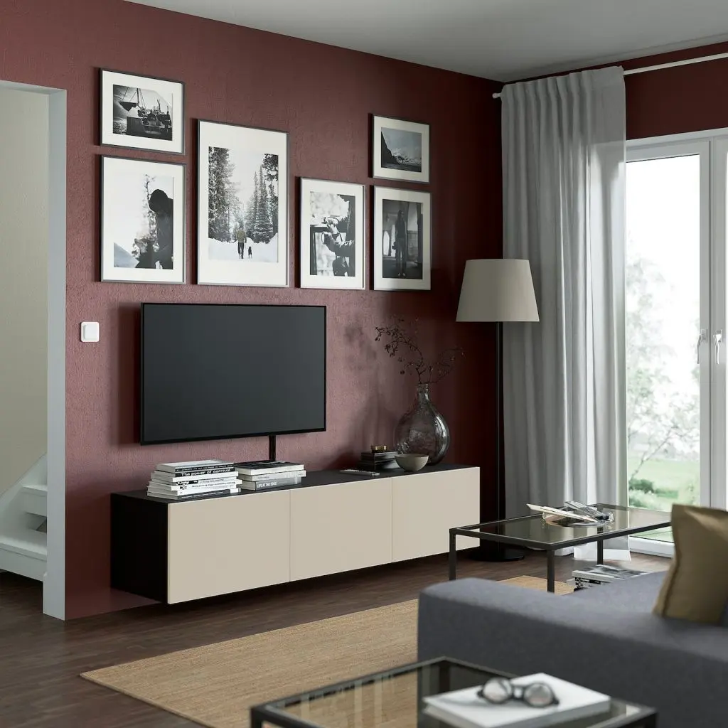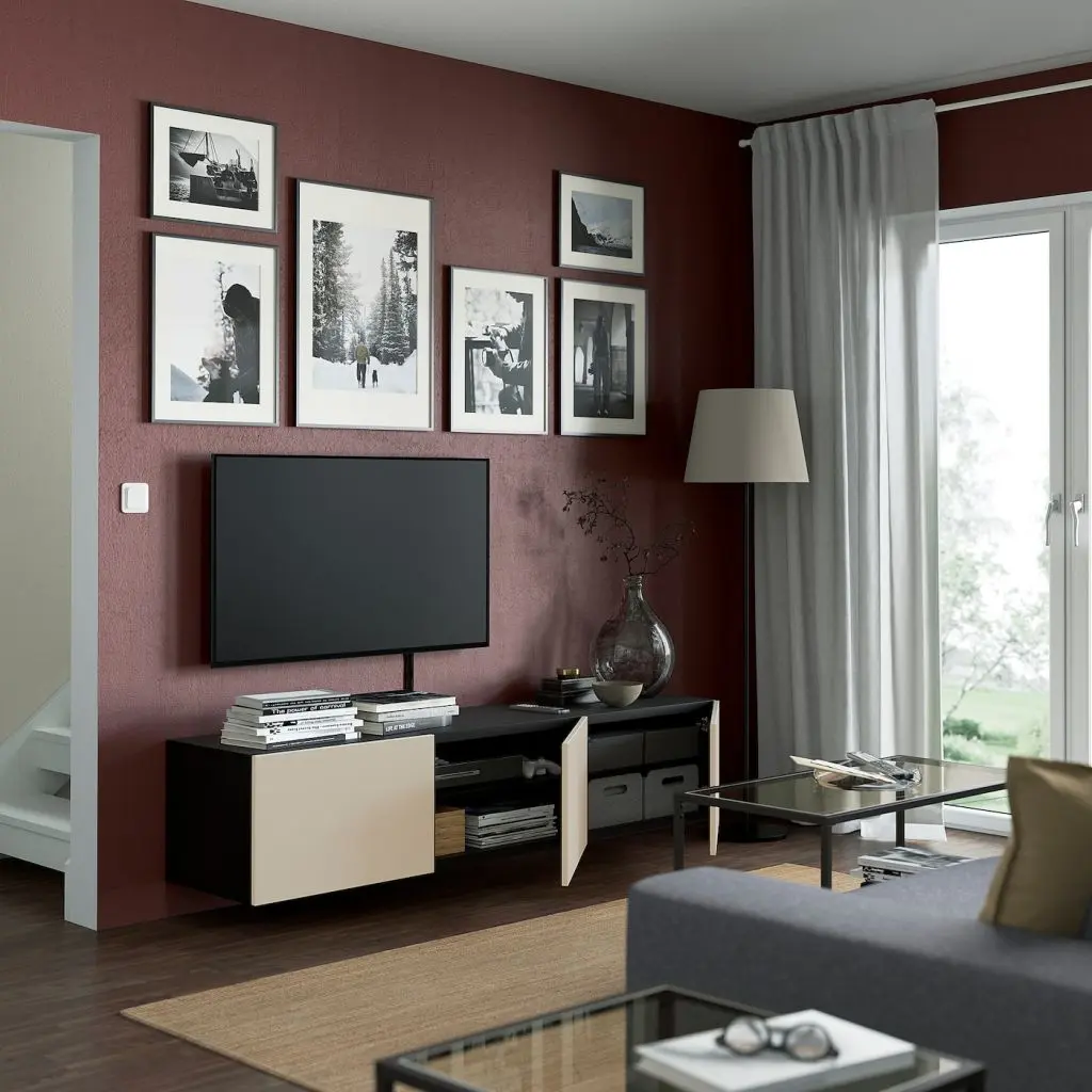 Чтобы подчеркнуть современный и лаконичный стиль интерьера, тумбу под ТВ БЕСТО можно закрепить на стене. Дополнительный плюс — ножки не будут мешать уборке.Благодаря нескольким отверстиям на задней панели тумбы под ТВ провода от телевизора и других устройств всегда будут под рукой, но не на виду.Специальное отверстие в верхней панели обеспечит удобное и компактное размещение проводов.Съемные полки позволяют регулировать пространство.Вы можете использовать нажимной механизм или устройство для плавного закрывания. В первом варианте для открывания дверцы достаточно слегка нажать на нее. А во втором – гарантировано плавное и бесшумное закрывание.Организуйте и оптимизируйте систему для хранения БЕСТО, используя подходящие коробки и вставки.Мы рекомендуем, чтобы тумба была немного шире, чем установленный на ней телевизор. Эта тумба подходит для телевизора до 72 дюймов. Вы можете выбрать телевизор большего размера, если он не тяжелее указанной максимальной нагрузки на верхнюю панель тумбы.Верхняя панель этой тумбы предназначена для телевизора весом макс. 50 кг.Если вы выберете функцию плавного закрывания, рекомендуем дополнить фасады ручками, чтобы открывать ящики/шкафы было удобнее.Максимальная нагрузка на закрепленный на стене модуль зависит от материала стены.Для разных стен требуются различные крепежные приспособления. Подберите подходящие для ваших стен шурупы, дюбели, саморезы и т. п. (не прилагаются).Стоящая на полу тумба под ТВ должна быть закреплена к стене с помощью прилагающего стенного крепежа.