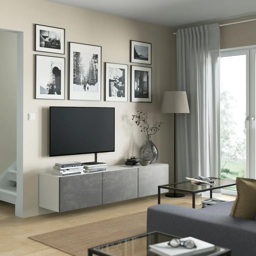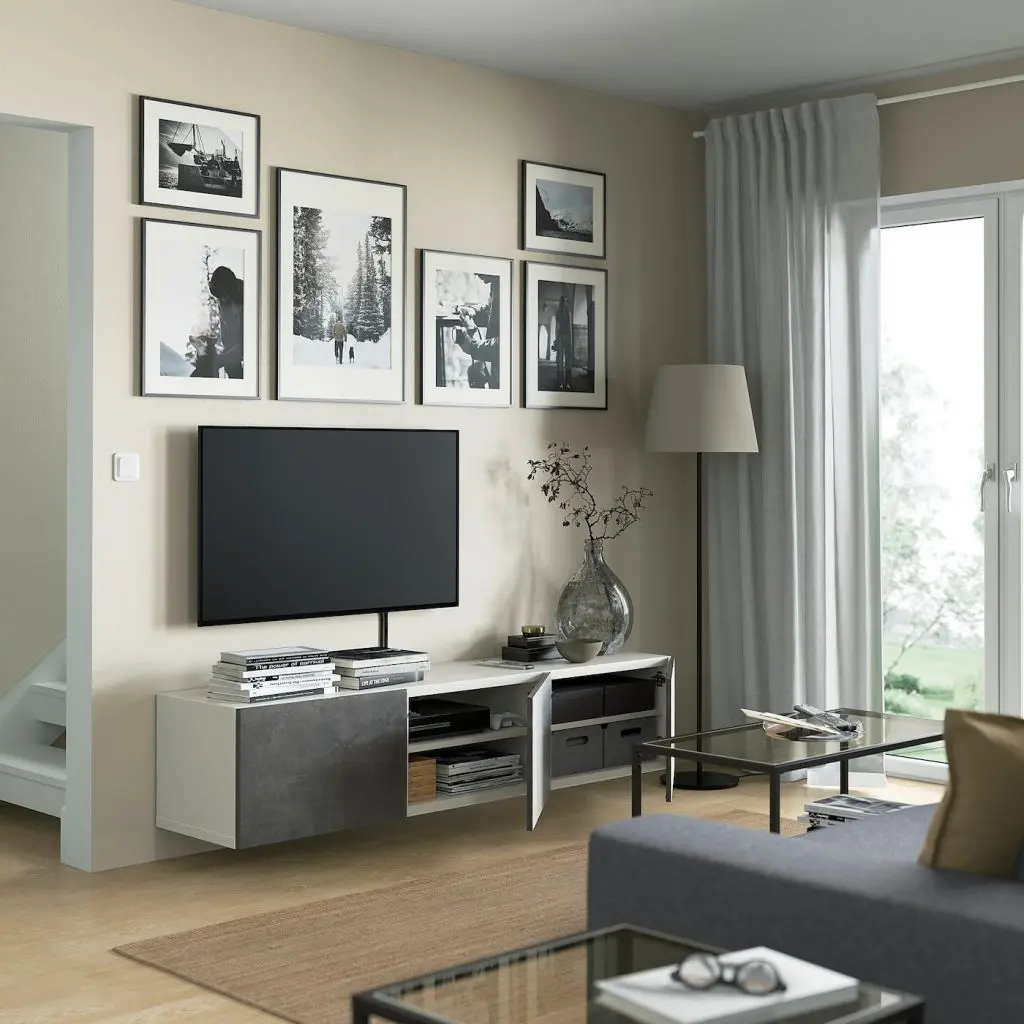 Чтобы подчеркнуть современный и лаконичный стиль интерьера, тумбу под ТВ БЕСТО можно закрепить на стене. Дополнительный плюс — ножки не будут мешать уборке.Благодаря нескольким отверстиям на задней панели тумбы под ТВ провода от телевизора и других устройств всегда будут под рукой, но не на виду.Специальное отверстие в верхней панели обеспечит удобное и компактное размещение проводов.Съемные полки позволяют регулировать пространство.Вы можете использовать нажимной механизм или устройство для плавного закрывания. В первом варианте для открывания дверцы достаточно слегка нажать на нее. А во втором – гарантировано плавное и бесшумное закрывание.Организуйте и оптимизируйте систему для хранения БЕСТО, используя подходящие коробки и вставки.Если вы выберете функцию плавного закрывания, рекомендуем дополнить фасады ручками, чтобы открывать ящики/шкафы было удобнее.Максимальная нагрузка на закрепленный на стене модуль зависит от материала стены.Для разных стен требуются различные крепежные приспособления. Подберите подходящие для ваших стен шурупы, дюбели, саморезы и т. п. (не прилагаются).Стоящая на полу тумба под ТВ должна быть закреплена к стене с помощью прилагающего стенного крепежа.