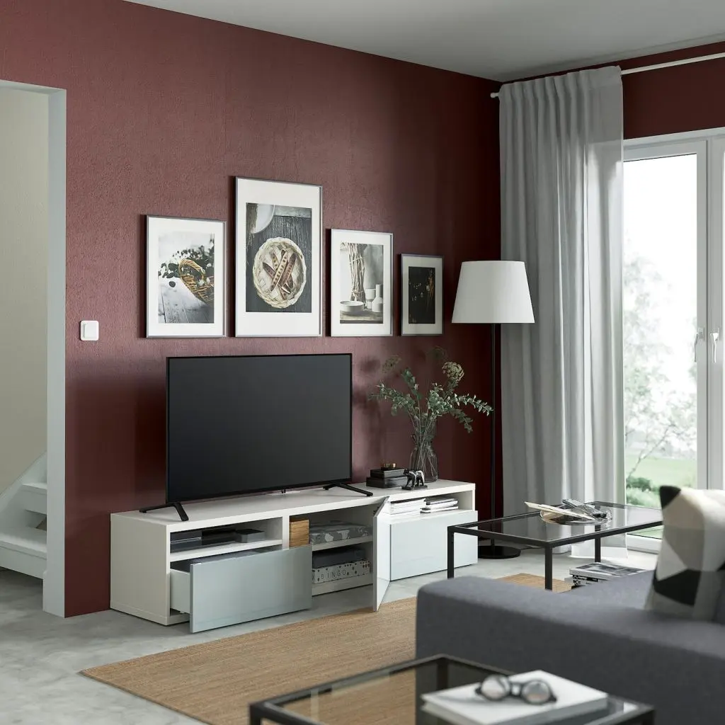 Благодаря доводчикам ящики закрываются плавно и бесшумно.Благодаря нескольким отверстиям на задней панели тумбы под ТВ провода от телевизора и других устройств всегда будут под рукой, но не на виду.Два ящика обеспечат порядок в хранении пультов, игровых приставок и других аксессуаров для ТВ.Регулируемые ножки обеспечивают устойчивость тумбы под ТВ даже на неровном полу.Организуйте и оптимизируйте систему для хранения БЕСТО, используя подходящие коробки и вставки.Тумбу под ТВ необходимо крепить к стене с помощью прилагающегося стенного крепежа.Для разных стен требуются различные крепежные приспособления. Подберите подходящие для ваших стен шурупы, дюбели, саморезы и т. п. (не прилагаются).Максимальная нагрузка на закрепленный на стене модуль зависит от материала стены.Если вы выберете функцию плавного закрывания, рекомендуем дополнить фасады ручками, чтобы открывать ящики/шкафы было удобнее.Чтобы создать единый интерьер во всем доме, фасады СЕЛЬСВИКЕН можно комбинировать с подходящими дверями ФАРДАЛЬ для гардероба ПАКС.