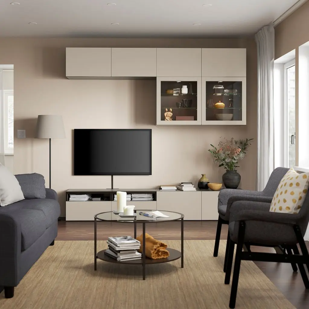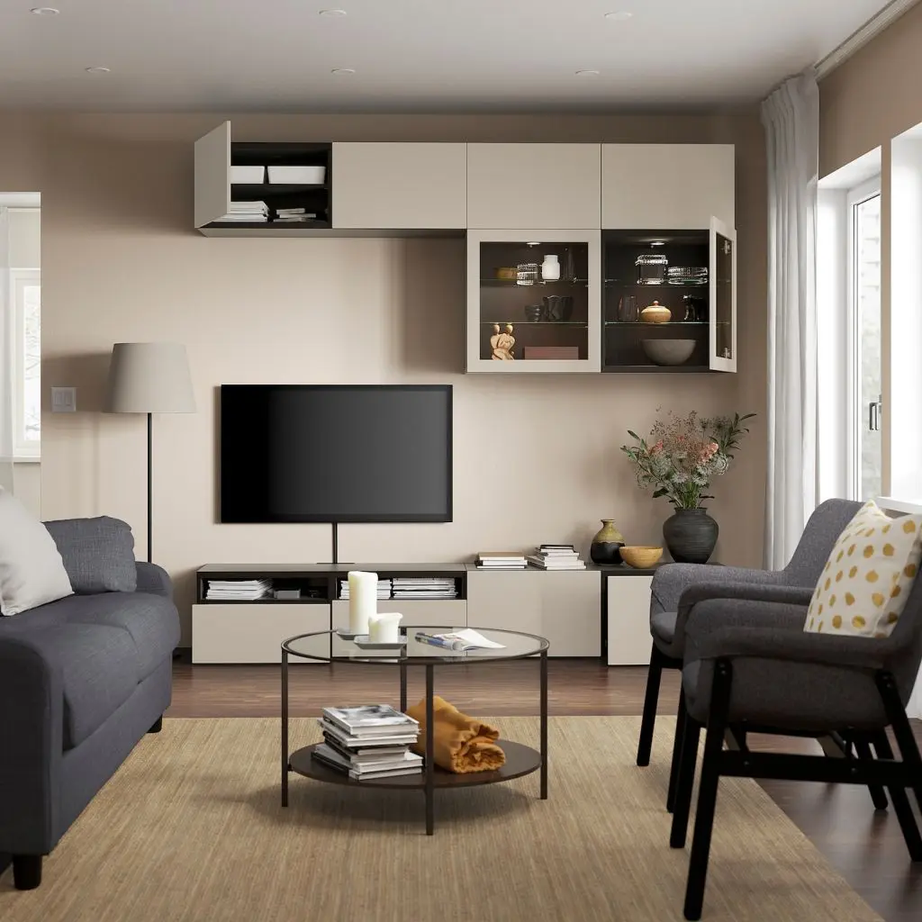 Тумба для телевизора БЕСТО может использоваться для телевизора и всех необходимых гаджетов. Открытые полки продемонстрируют ваши любимые вещи, а в закрытых вы сможете спрятать то, что хотите скрыть от посторонних глаз.