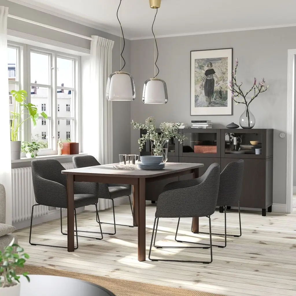 Стол/2стула/скамья, темно-коричневый/Рамна светло-серый, 120/180 см