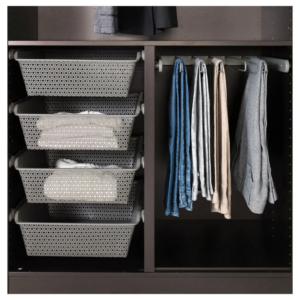 Бесплатно 10 лет гарантии. Подробнее об условиях гарантии – в гарантийной брошюре.Помогает организовать внутреннего пространство гардероба для хранения сложенных вещей, висящей длинной и короткой одежды, а также обуви.Подходит для каркаса 100×58 см.Подходит для всех внутренних элементов КОМПЛИМЕНТ размером 50×58 см.Дизайнер