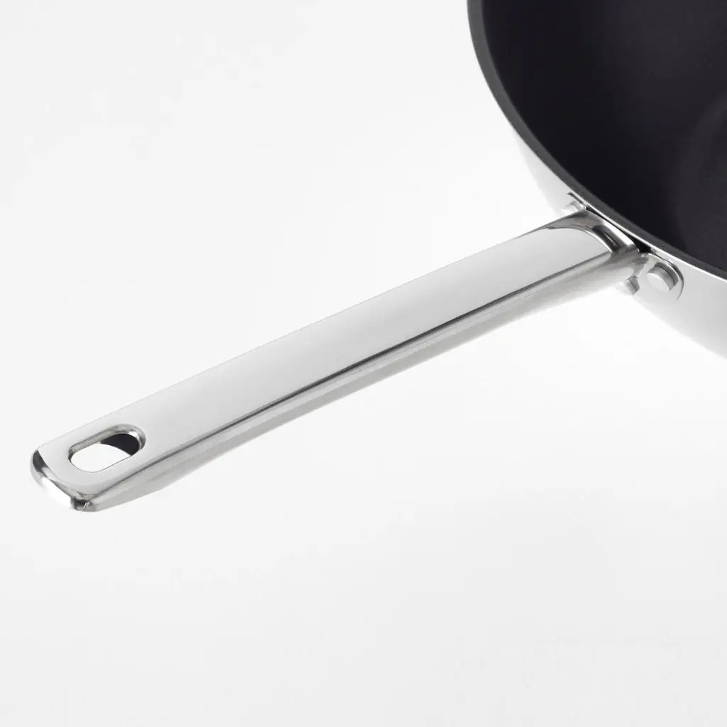 Подходит для всех типов варочных панелей, включая индукционную.Трехслойная конструкция дна: слой алюминия между двумя слоями нержавеющей стали. Обеспечивает равномерное нагревание, поэтому пища не пригорает и не прилипает к поверхности.Благодаря прочному антипригарному покрытию Teflon® Platinum plus посуда подходит для ежедневного использования.Благодаря наклонным стенкам пища попадает на дно, которое нагревается сильнее; для получения хрустящей корочки необходимо тщательно перемешивать.Легко поднимать и переносить благодаря двум ручкам.Сделано из нержавеющей стали. Прочный и простой в уходе материал.Ручка сковороды нагревается в процессе использования — обязательно пользуйтесь прихваткой, перемещая кухонную посуду или снимая крышку.Вымойте изделие перед первым использованием.Дизайнер