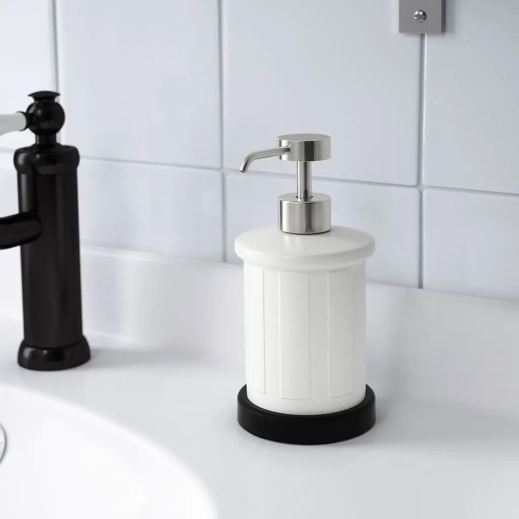 Легко наполнить вашим любимым мылом.Маленькие незаметные пластиковые ножки фиксируют дозатор для мыла и защищают раковину от появления царапин.Комбинируется с другими товарами серии ТОФТАН.Дизайнер