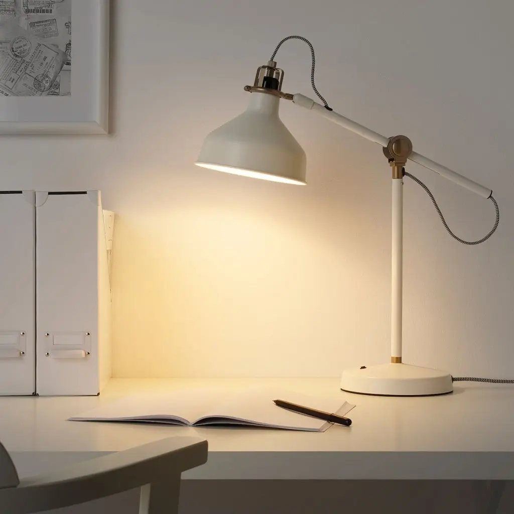 Светильники РАНАРП выполнены в ретростиле, который подчеркивается выразительными деталями: металлическими соединениями и шнурами с текстильной оплеткой. Тяжелые и устойчивые напольные и настенные светильники при этом прекрасно регулируются.