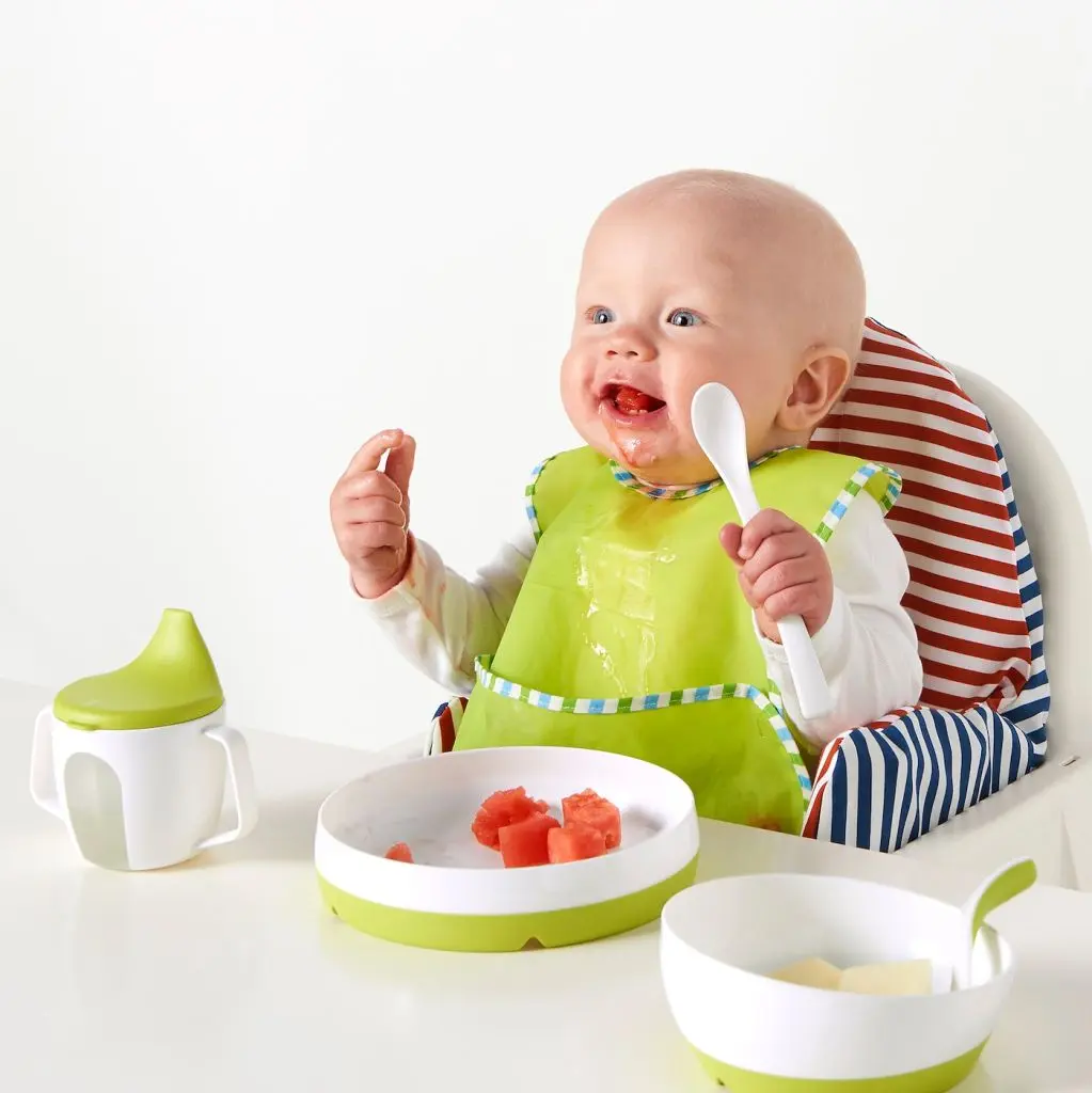 Ребенку удобно есть из такой посуды благодаря широкому плоскому дну тарелки и миски и нескользящей поверхности, обеспечивающей устойчивость на столе.Из этой глубокой посуды малышу будет удобно есть самостоятельно.Одобрено для использования с пищевыми продуктами, изготовлено из безвредного пластика, использующегося также для производства детских бутылочек, одноразовых пеленок и контейнеров для продуктов.Рекомендовано для детей от 0 лет.В набор входит: 1 миска (диам. 13 см) и 1 тарелка (диам.16 см).Дизайнер