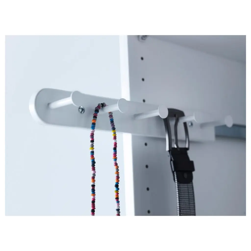 Бесплатно 10 лет гарантии. Подробнее об условиях гарантии – в гарантийной брошюре.Многофункциональная вешалка поможет организовать хранение поясов, шарфов, галстуков и других аксессуаров.Выдвижная вешалка обеспечивает хороший обзор и удобный доступ к вашим вещам.Позволяет эффективно использовать внутреннее пространство гардероба.Многофункциональная вешалка с 5 крючками. На каждый крючок можно повесить 5 ремней или 5–8 бус.Разные варианты глубины.Подходит для каркасов глубиной 35 см.Дизайнер