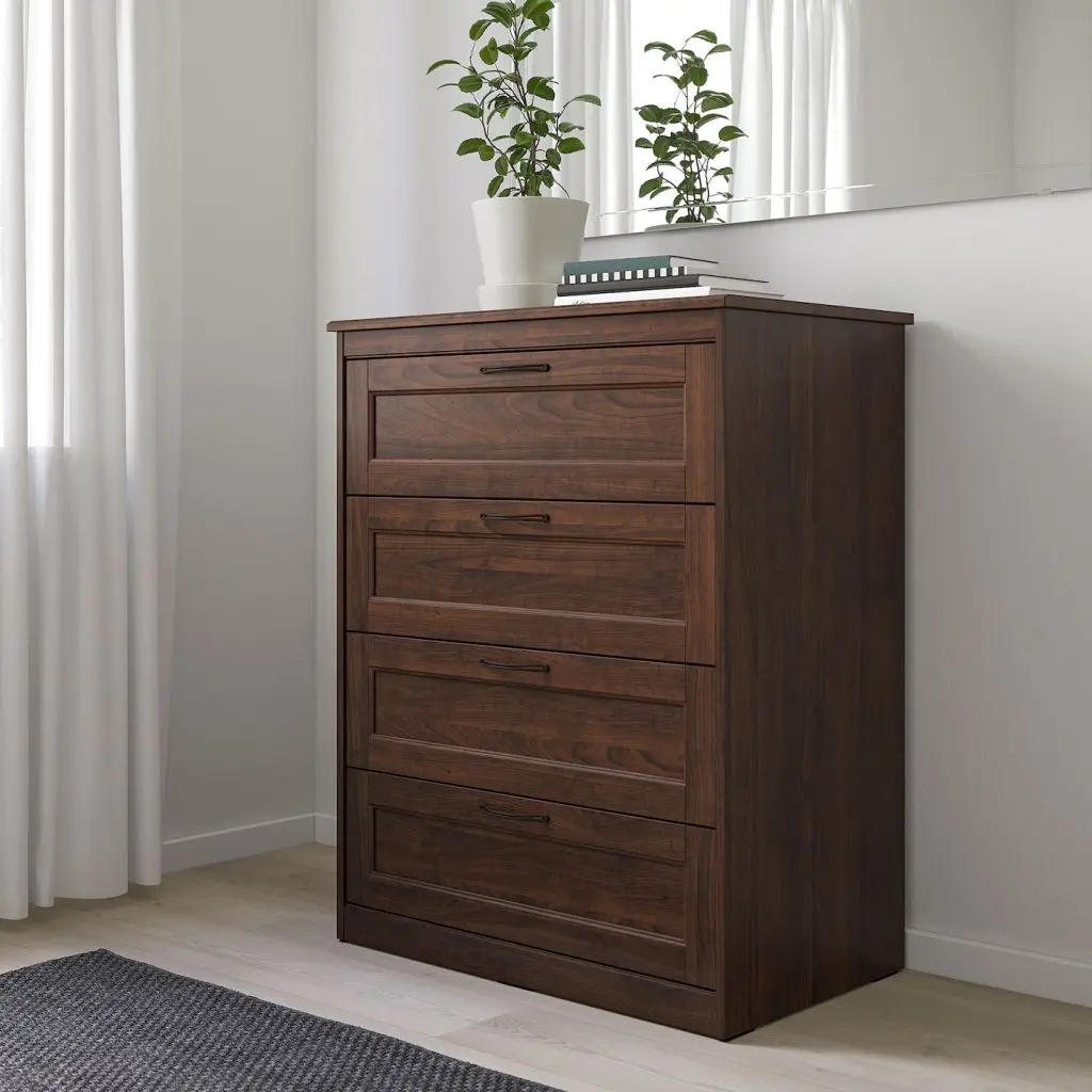 Ваш дом должен быть абсолютно безопасен для всей семьи. Именно поэтому крепеж безопасности для фиксации комода к стене прилагается.Чтобы ящики не выпадали при открывании, они оснащены специальным стопором.ВНИМАНИЕ! ОПАСНОСТЬ ОПРОКИДЫВАНИЯ! Незакрепленная мебель может опрокинуться. Эту мебель необходимо крепить к стене с помощью прилагаемого крепежа для предотвращения опрокидывания.Для различных материалов стен требуются различные крепежные средства. Используйте крепежные средства, подходящие для материала стен в вашем доме.В ящик можно положить примерно 15 пар брюк или 30 футболок.Дизайнер