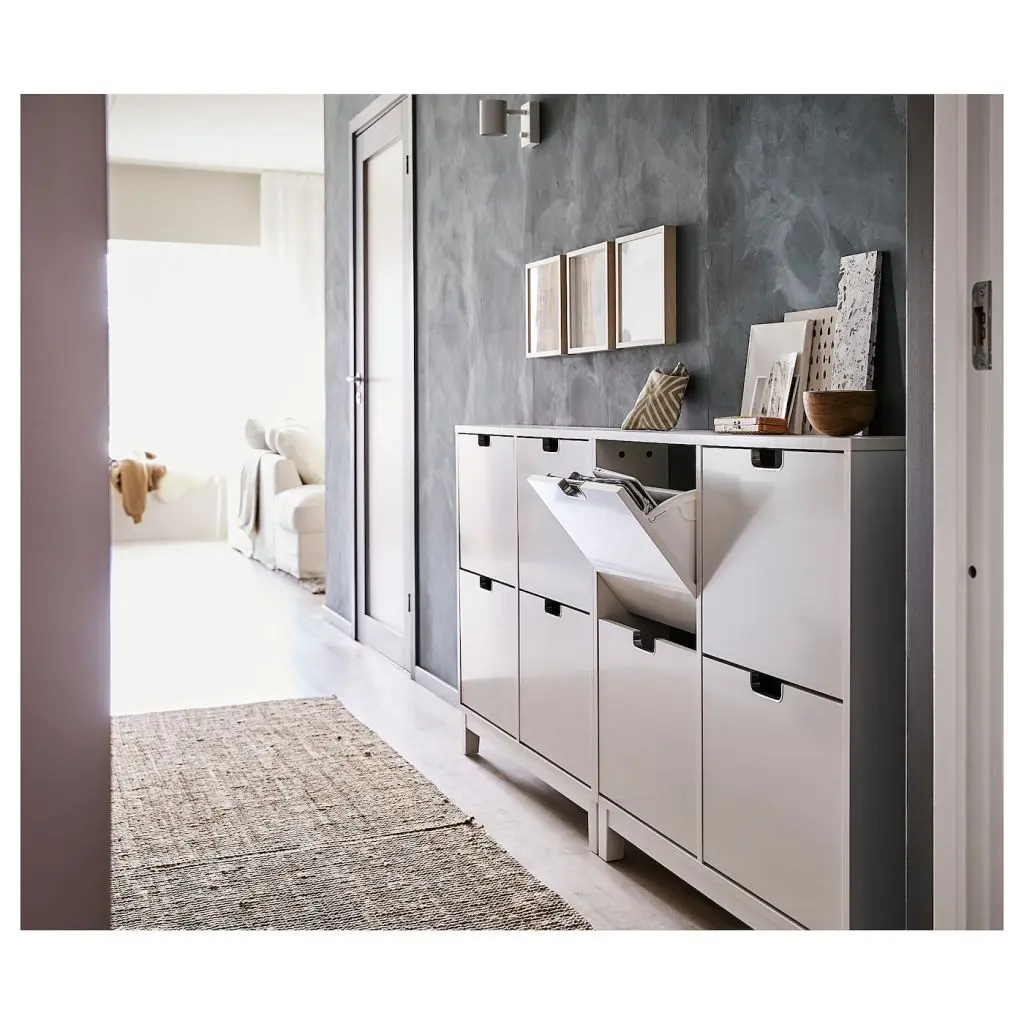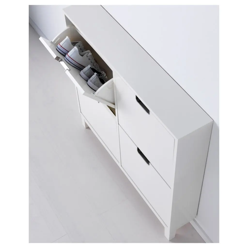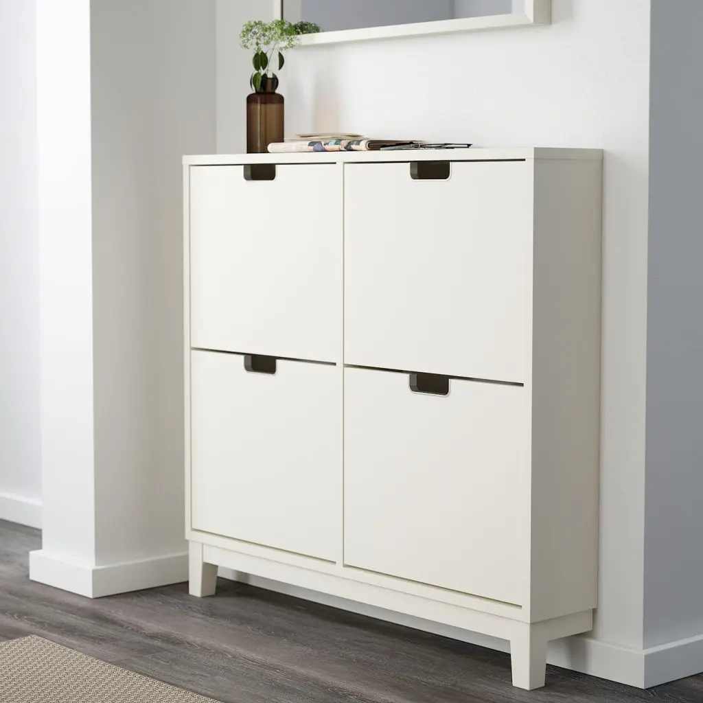 Обеспечивает идеальный порядок в хранении обуви и не занимает много места на полу.Отсутствие задних ножек позволяет поставить шкаф вплотную к стене над плинтусом.Благодаря циркуляции воздуха при хранении ваша обувь дольше будет выглядеть как новая.Отсутствие задних ножек позволяет поставить шкаф вплотную к стене над плинтусом.Вмещает мин. 8 пар обуви.Этот шкаф необходимо крепить к стене; для этого на задней панели есть специально подготовленные отверстия.Для разных стен требуются различные крепежные приспособления. Подберите подходящие для ваших стен шурупы, дюбели, саморезы и т. п. (не прилагаются).Дизайнер