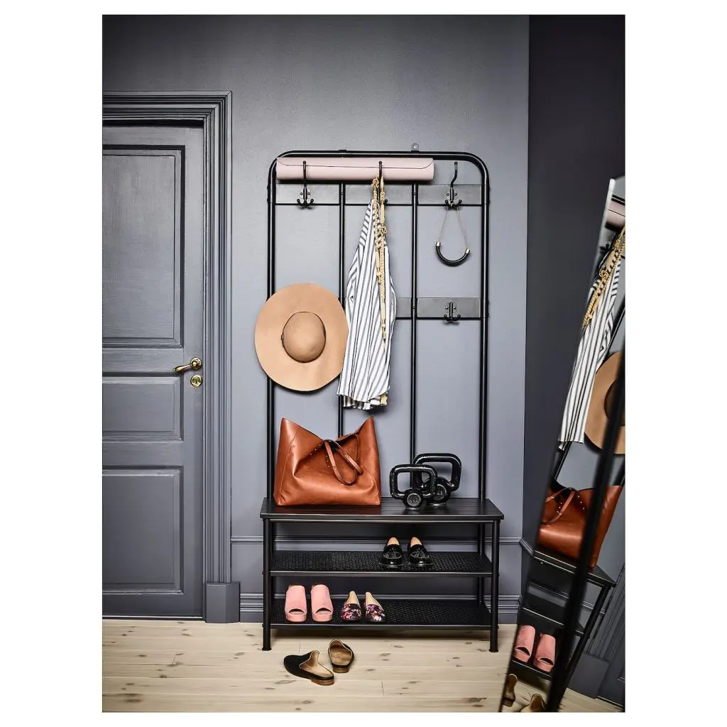 Это практичное решение включает в себя вешалку, секцию для обуви и скамью. Вы можете удобно сидеть надевая и снимая обувь, а все необходимое всегда будет под рукой.