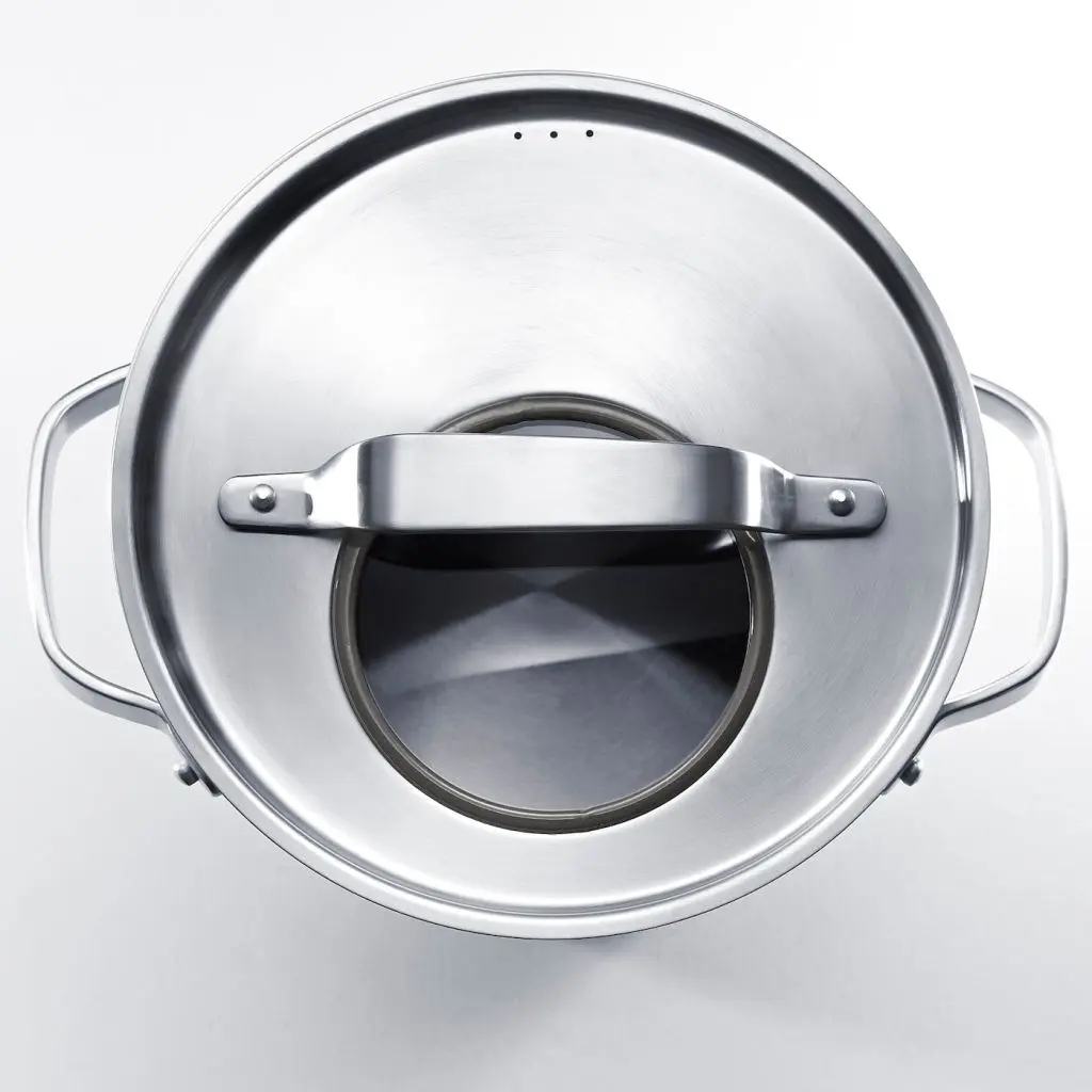 Бесплатно 25 лет гарантии. Подробнее об условиях гарантии – в гарантийной брошюре.Удобные ручки позволят безопасно выливать содержимое кастрюли.Стеклянное окошко в крышке позволит вам максимально контролировать процесс приготовления.Трехслойная конструкция: алюминий, обладающий высокой теплопроводностью, между двумя слоями нержавеющей стали. Это обеспечивает равномерное прогревание и быстрое регулирование интенсивности нагревания.Толстые стенки и дно равномерно распределяют тепло.С мерной шкалой на внутренней поверхности – легко измерить количество жидкости.Вы можете готовить при небольшом уровне нагрева и экономить энергию, так как нержавеющая сталь хорошо нагревается и долго удерживает тепло.Подходит для всех типов варочных панелей, включая индукционную.Форма крышки обеспечивает стекание капель конденсата в кастрюлю, а не на поверхность столешницы, когда вы снимаете крышку.Прочную кастрюлю легко поддерживать в чистоте, так как она изготовлена из нержавеющей стали высокого качества.Благодаря отверстию для вентиляции давление снижается и содержимое не выкипает.Использование крышки обеспечивает быстрое закипание, что сокращает время приготовления и расход энергии.Крышка кастрюли СЕНСУЭЛЛ также подойдет для сотейника этой серии.Вымойте изделие перед первым использованием.Дизайнер