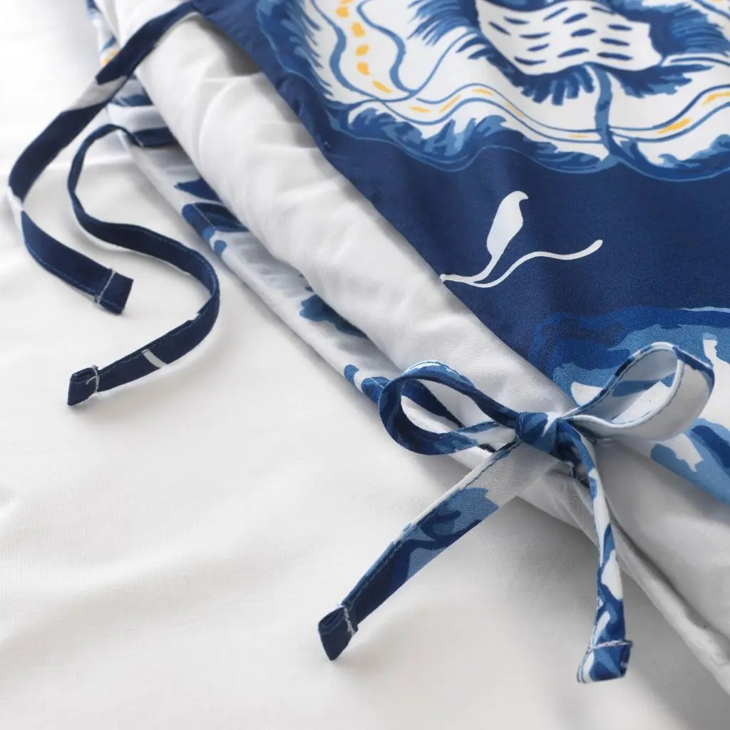 Это постельное белье изготовлено из натурального хлопка, выращенного с заботой о людях и природе. Материал не содержит вредных веществ. Ребенок часто ворочается во сне? Тогда вы оцените завязки, которые не позволят одеялу выбиваться из пододеяльника.