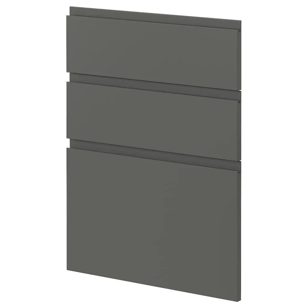 Матовые серо-зеленые дверцы БОДАРП изготовлены на предприятии, использующем возобновляемую энергию. Материал для производства пленки получен из переработанных пластиковых бутылок. Экологичное решение для кухни в современном стиле.