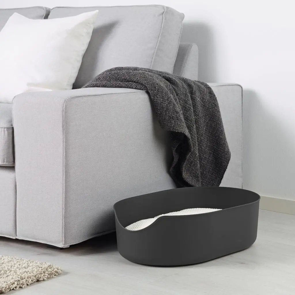 Благодаря высоким бортикам наполнитель не высыпается на пол.Благодаря овальной форме лотка его удобно чистить совком.Этот лоток также можно использовать как лежанку для кошки, просто положите в него что-то мягкое, например подушку ЛУРВИГ.Для кошек.Дизайнер