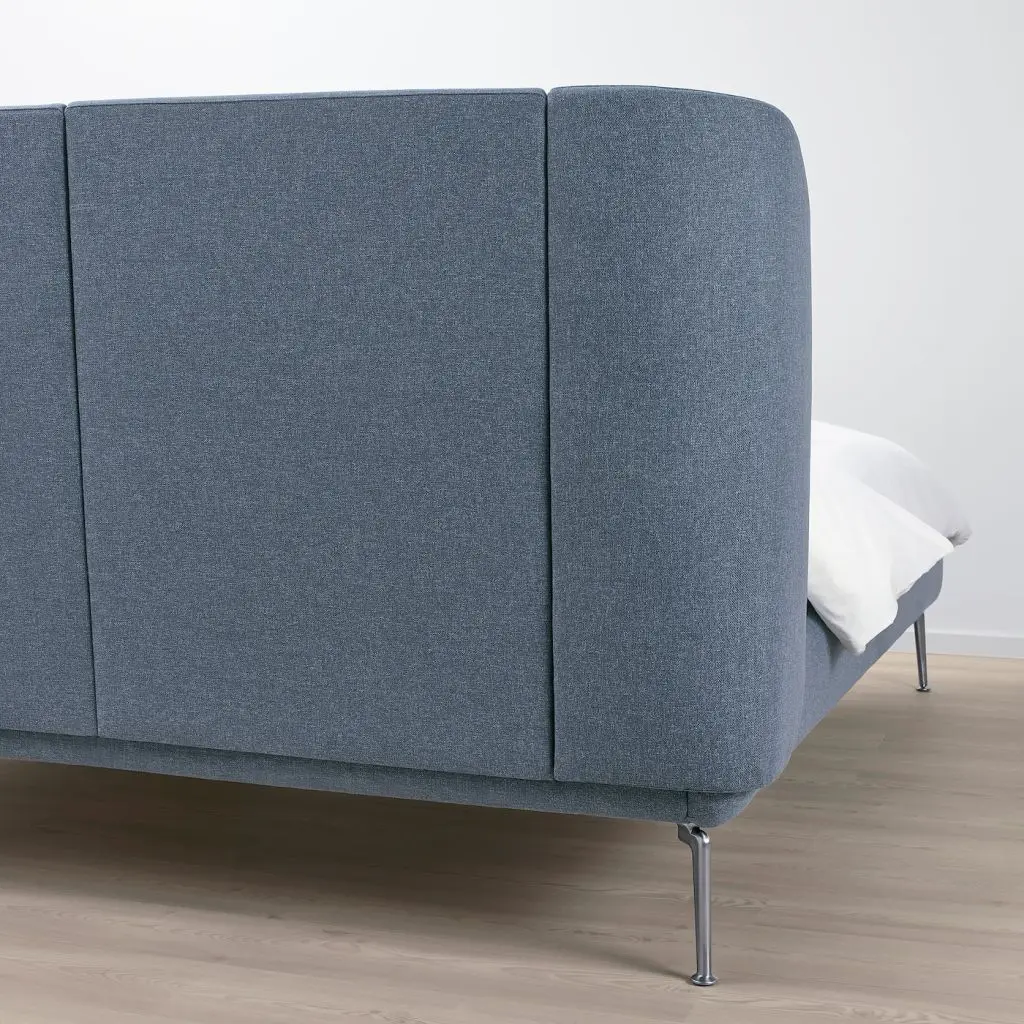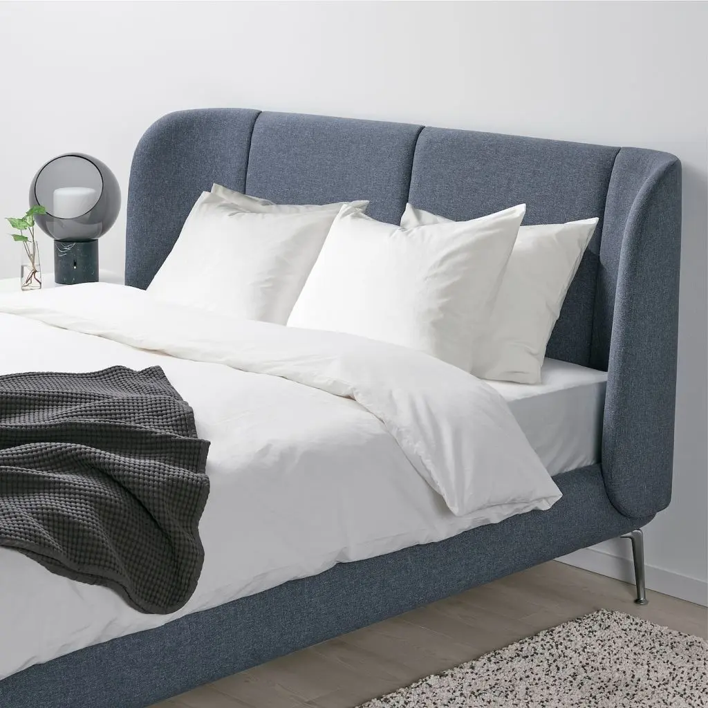 Закругленное по бокам изголовье делает спальное место особенно уютным.На изголовье так удобно опереться, сидя утром с чашечкой кофе или читая перед сном.Кровать с обивкой будет прекрасно смотреться в интерьере, даже если вы поставите ее в центр комнаты.Выразительная фактурная ткань обивки из меланжевой пряжи двух оттенков.Стильные металлические ножки подчеркнут выразительный дизайн кровати.Под кроватью можно разместить ящики — отличное решение для хранения подушек и одеял.Пространство под кроватью можно без труда почистить пылесосом.Регулируемые боковины кровати позволяют использовать матрасы разной толщины.Реечное дно кровати и центральная перекладина прилагаются.Матрас и постельное белье продаются отдельно.Износостойкость чехла подтверждена 50000 циклов воздействия истиранием. Способность выдержать 15000 циклов и более считается нормой для мебели для бытового использования. Показатель более 30000 циклов означает высокую устойчивость материала к истиранию.Чехол имеет уровень светостойкости (способность противостоять выцветанию) 5–6 по шкале от 1 до 8. В соответствии с отраслевыми стандартами материал с уровнем светостойкости 4 или выше подходит для домашнего использования.Дизайнер