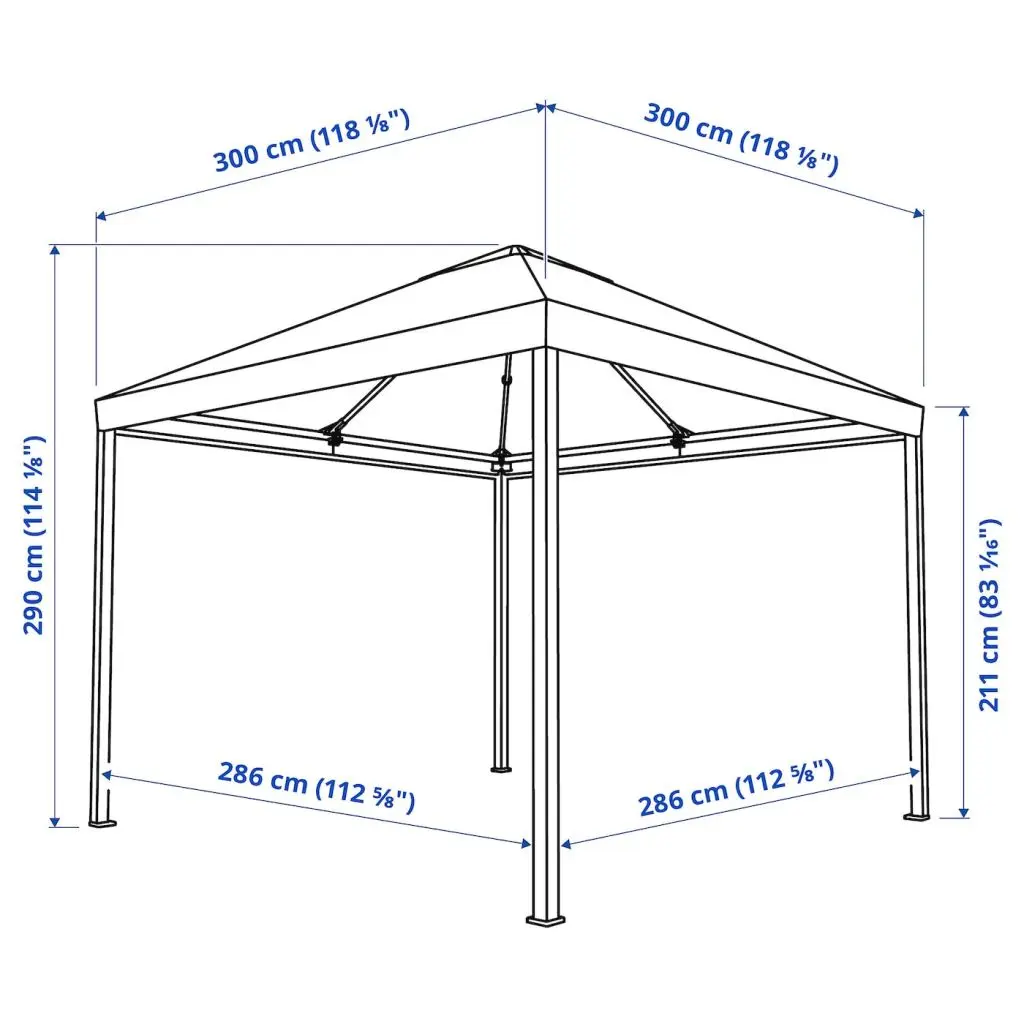 Ткань обеспечивает отличную защиту от УФ-лучей. Коэффициент защиты (UPF): 50+. Ткань с таким коэффициентом защиты блокирует 98 % ультрафиолетового излучения.Прочная ткань устойчива к выцветанию и надолго сохранит свежесть цвета.Легкий дождь не помешает отдыху в павильоне, так как ткань обладает водоотталкивающими свойствами.Вентиляционное отверстие снижает напор ветра и обеспечивает циркуляцию теплого воздуха.Прочный и устойчивый каркас из стали с порошковым покрытием.Легко содержать в чистоте: ткань можно снимать и стирать в машине.Павильон не обеспечивает защиту от отраженного и рассеянного ультрафиолетового излучения.Обязательно снимайте ткань с каркаса павильона в ветреную погоду.Павильон должен быть надежно прикреплен к земле.Сборку должны производить два человека.Пластиковые колышки для фиксации павильона на газоне прилагаются. Крепежные средства для других материалов не прилагаются.