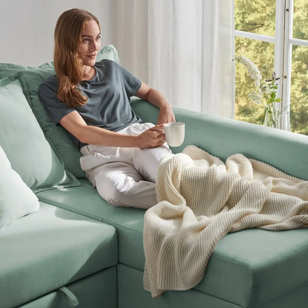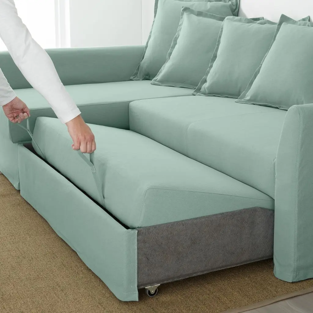 Этот диван легко раскладывается в кровать и превращает гостиную в спальню. Вместительное отделение под сиденьем идеально для хранения постельных принадлежностей.