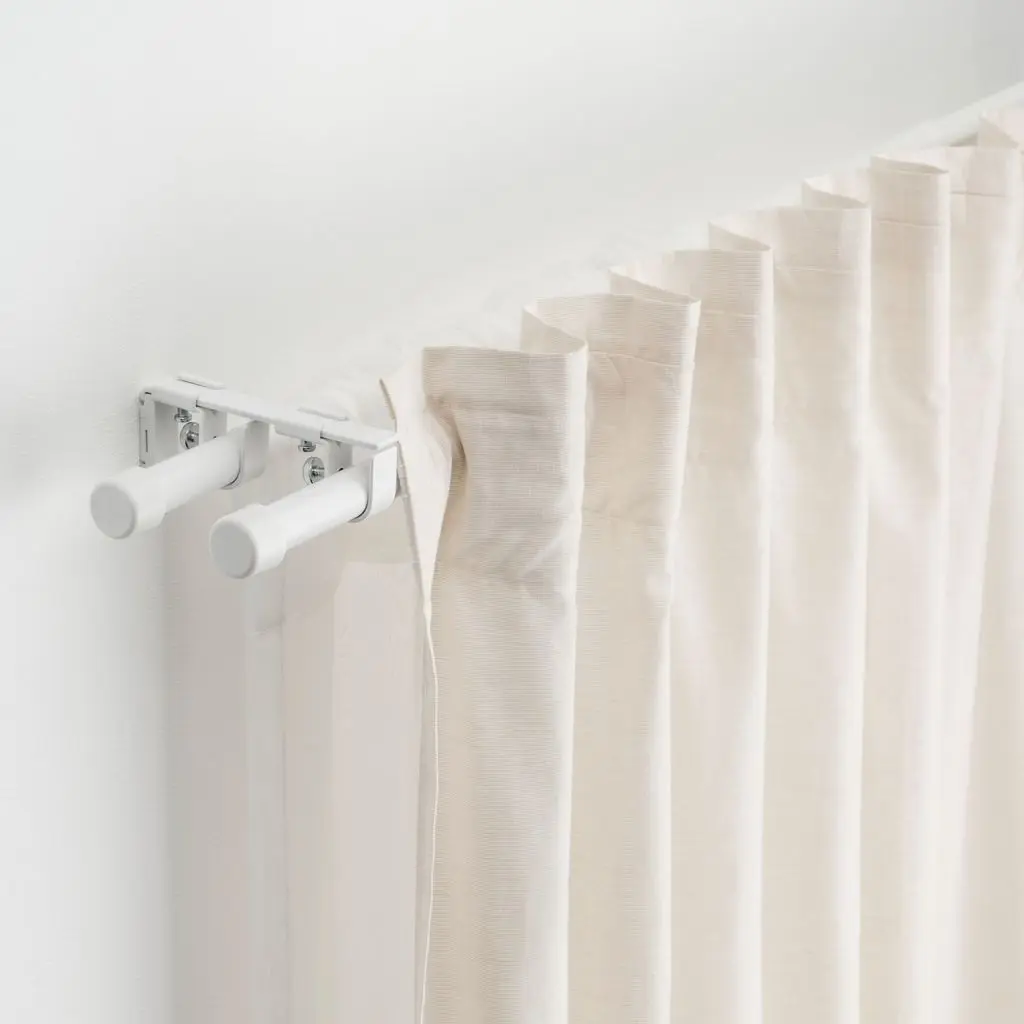Гардинный карниз с соединителем, который позволяет создавать различные решения для оформления окна при покупке дополнительных комплектов.Можно закрепить прямо под потолком, так как держатели устанавливаются снизу.В комплект входит: 2 гардинных карниза, 3 настенных крепления, 6 держателей для карниза, 3 пластиковых заглушки для настенных креплений, 4 наконечника и 2 соединителя.Дизайнер