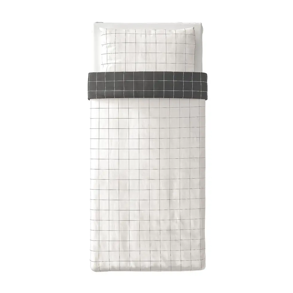 Пододеяльник и наволочка, белый черный/клетка, 150x200/50x70 см