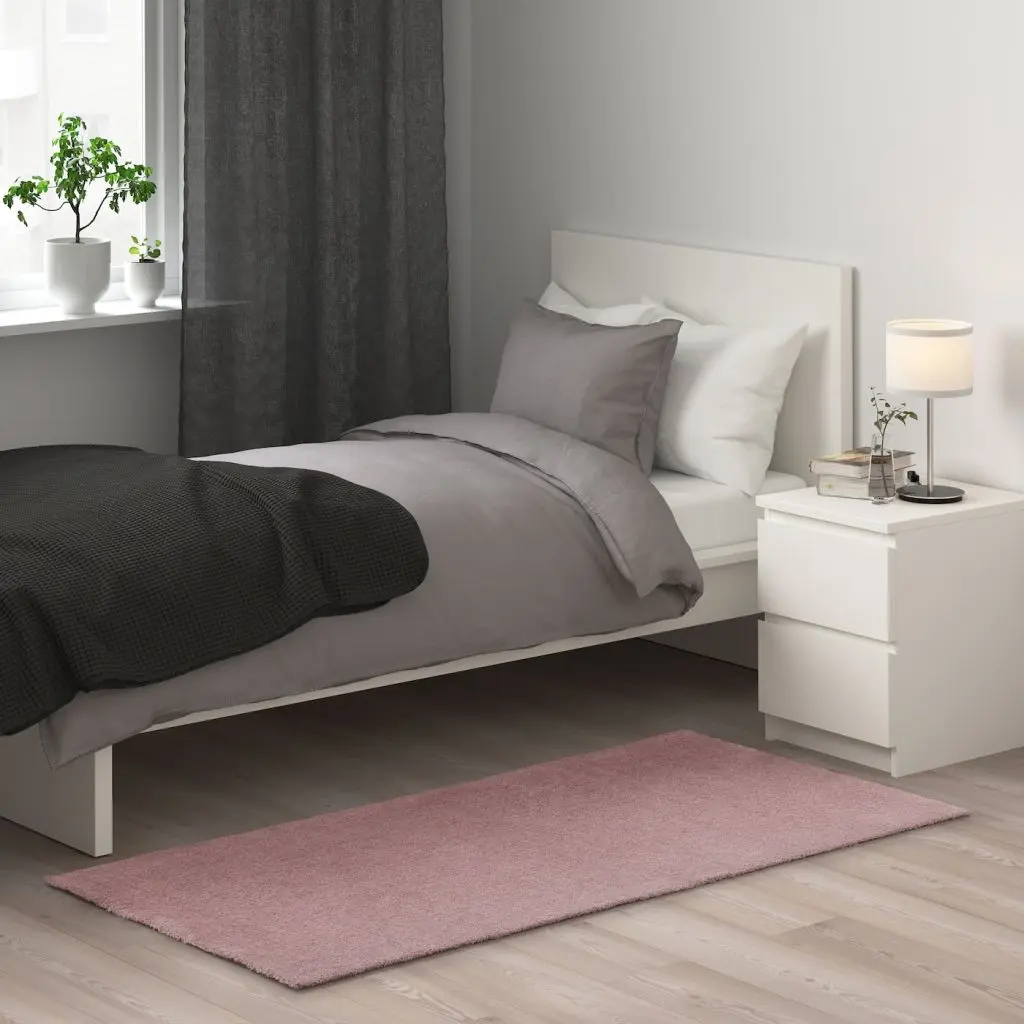 Классический бледно-розовый ковер с легким блеском будет прекрасно смотреться в любом интерьере. Толстый ворс придает поверхности приятную мягкость. Экологичное решение, так как ковер изготовлен из переработанного полиэстера.