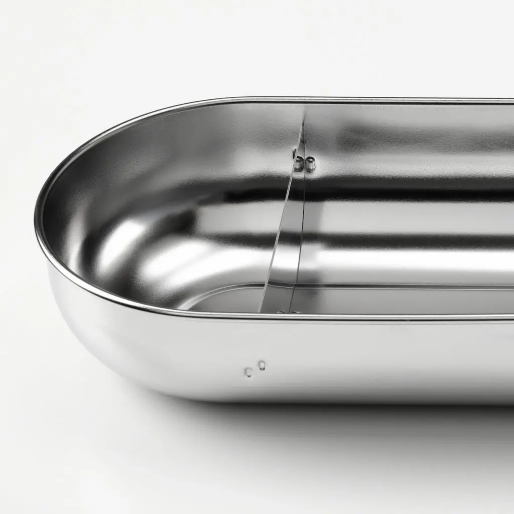 Контейнер для продуктов ХАЛЬВВАРМ из нержавеющей стали сохраняет вкус блюда, не впитывает запахи и никогда не сломается, даже если вы его случайно уроните.Герметичная силиконовая крышка сохраняет еду в контейнере свежей. Удобно, чтобы взять с собой закуски, завтрак или обед.Со съемным разделителем для раздельного хранения блюд. Когда разделитель не нужен, вы легко сможете его убрать.Непористый материал прост в уходе.Плотно прижмите крышку, чтобы обеспечить герметичность закрывания.Дизайнер