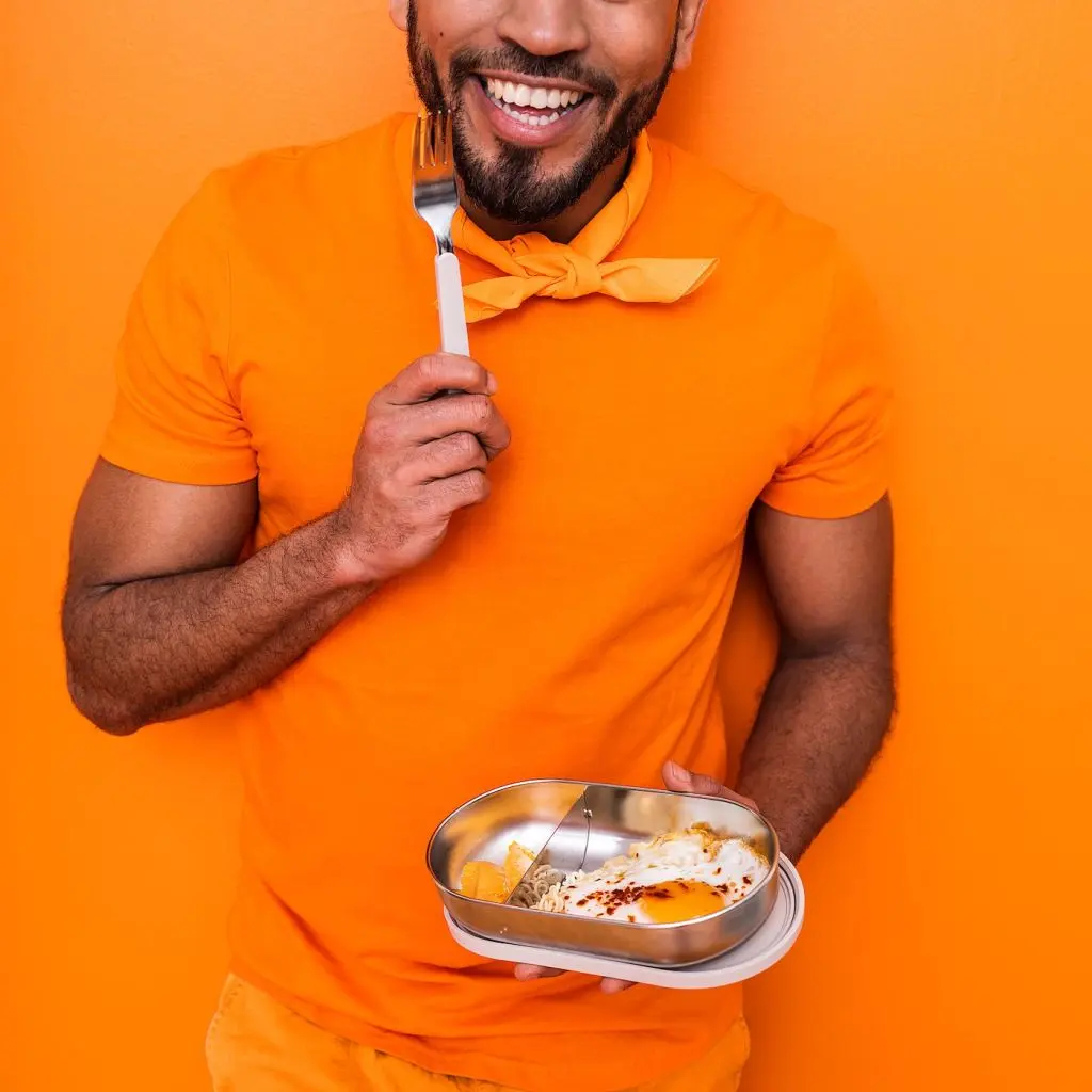 Храните еду в этом стильном контейнере для продуктов и наслаждайтесь любимыми блюдами дома, на работе или на свежем воздухе. Контейнер, изготовленный из прочной нержавеющей стали, герметичен, поэтому его спокойно можно положить в сумку или рюкзак.