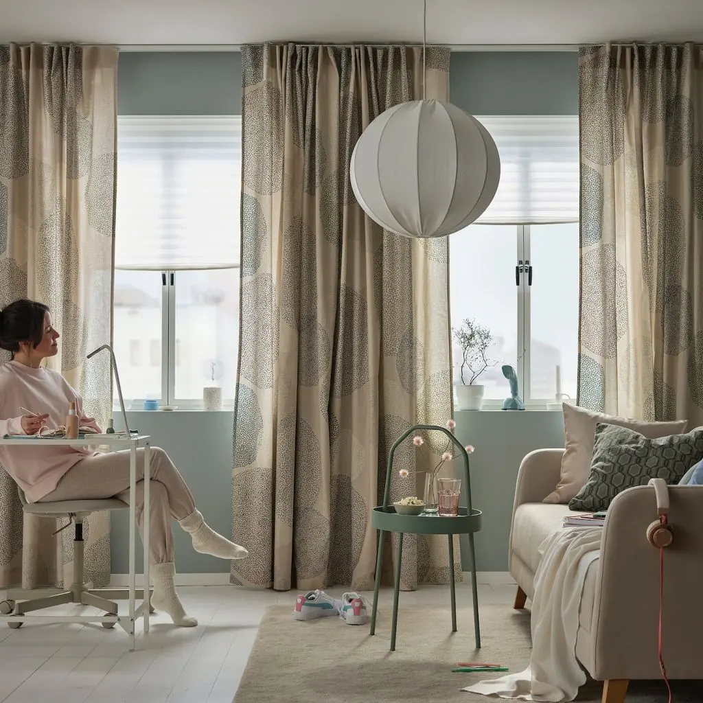 Тесьма по верхнему краю позволяет делать складки, используя гардинные крючки РИКТИГ.