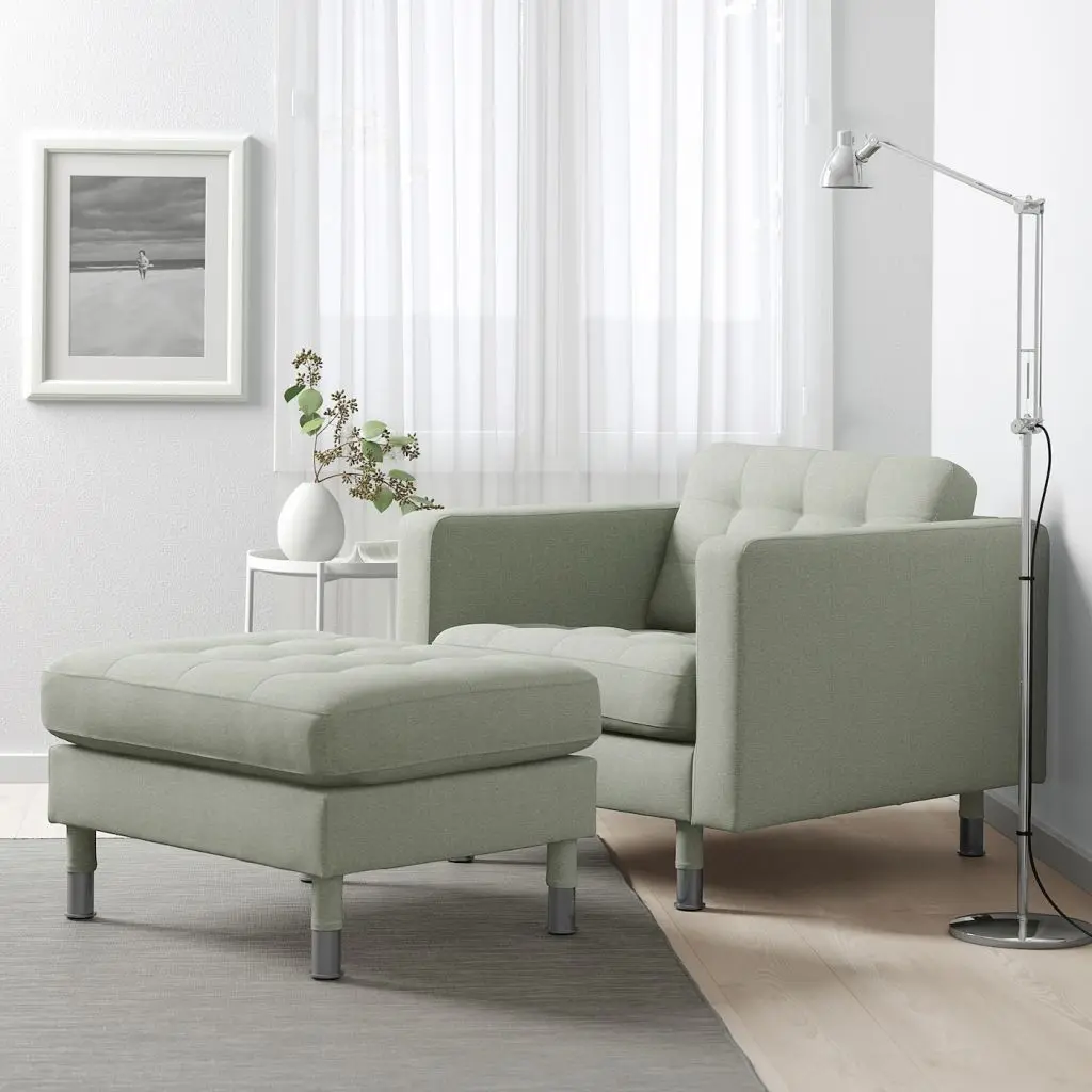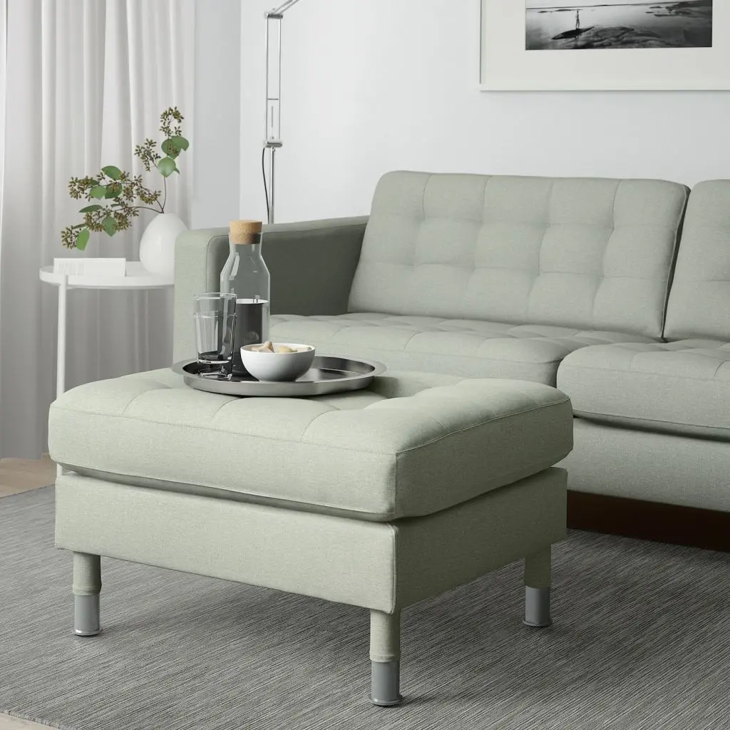 Можно использовать как дополнительное место для сидения или комфортное продолжение дивана.Плотно облегающая тканевая обивка выглядит привлекательно и создает уют, а благодаря стеганой отделке табурет для ног смотрится особенно стильно.Подушки сиденья с наполнителем из высокоэластичного пенополиуретана и ваты из полиэстерного волокна обеспечивают особый комфорт.Бесплатно 10 лет гарантии. Подробнее об условиях гарантии – в гарантийной брошюре.Чехол имеет уровень светостойкости (способность противостоять выцветанию) 5–6 по шкале от 1 до 8. В соответствии с отраслевыми стандартами материал с уровнем светостойкости 4 или выше подходит для домашнего использования.Износостойкость чехла подтверждена 50000 циклов воздействия истиранием. Способность выдержать 15000 циклов и более считается нормой для мебели для бытового использования. Показатель более 30000 циклов означает высокую устойчивость материала к истиранию.Чехлы на ножки соответствующие чехлу прилагаются.Обивка.Дизайнер